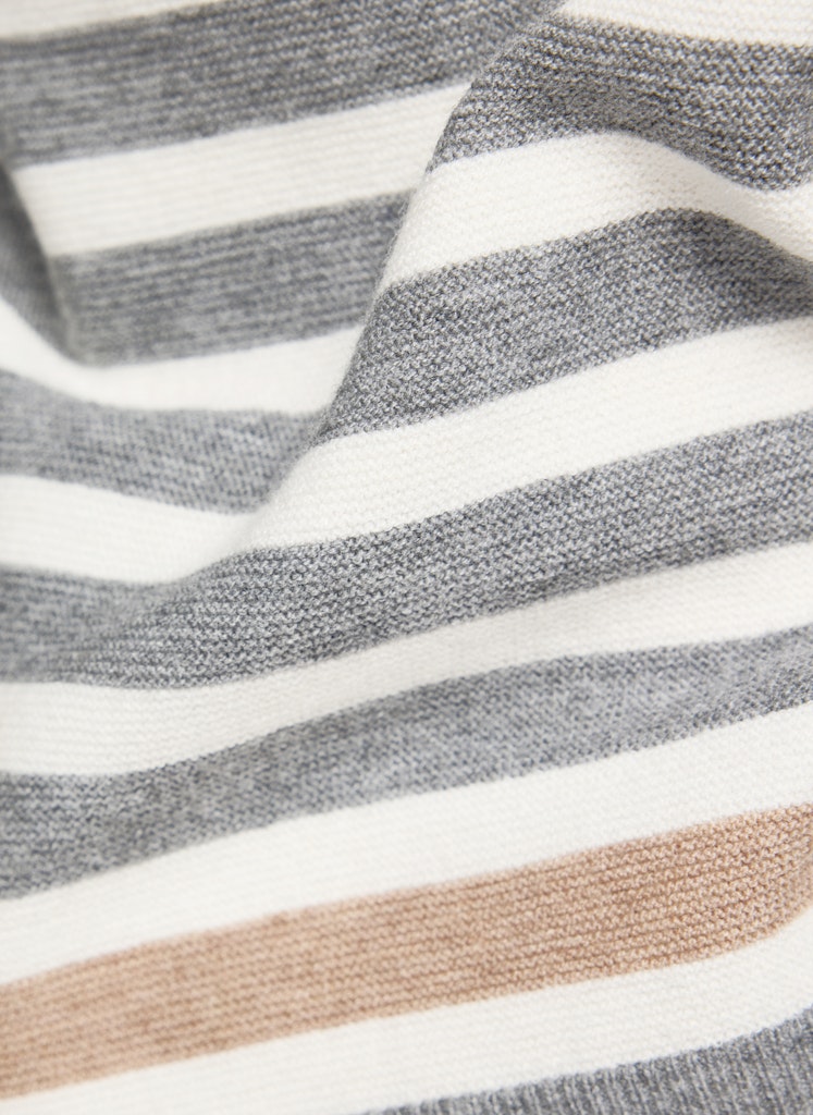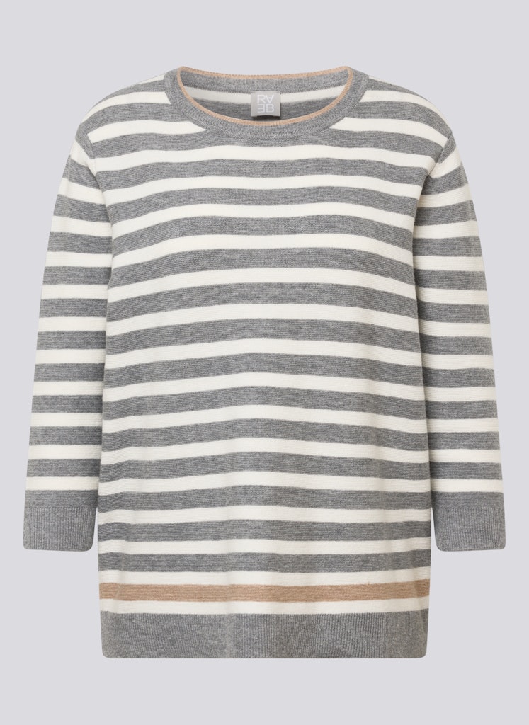 Dieser Pullover zeigt sich in klassischer Streifenoptik mit abgesetztem Saum und feinen Farbakzenten. Der weiche Feinstrick sorgt für angenehmen Tragekomfort, während der Rundhalsausschnitt und die 3/4-langen Ärmel eine zeitlose Silhouette formen. Ideal für entspannte Looks mit Jeans oder Stoffhose _ vielseitig kombinierbar und angenehm zu tragen. Feinstrickqualität. Klassisches Streifenmuster. Rundhalsausschnitt. 3/4-lange Ärmel. Saum mit farblich abgesetztem Abschluss.