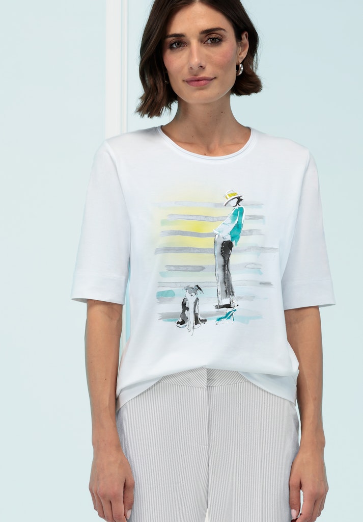 Unser neues Print-Shirt Dinia bringt mit seinem coolen Modeprint frischen Schwung in Ihren Look. Der Rundhalsausschnitt mit feiner Rollkante und der modische Mailänder Arm verleihen dem Shirt eine stylische Note. Die hochwertige Baumwollqualität mit Elasthan sorgt zusammen mit der geraden, schmalen Passform für ein angenehmes Tragegefühl. Dinia ist ein echtes Allround-Talent, das jedes Outfit lässig und modern ergänzt.