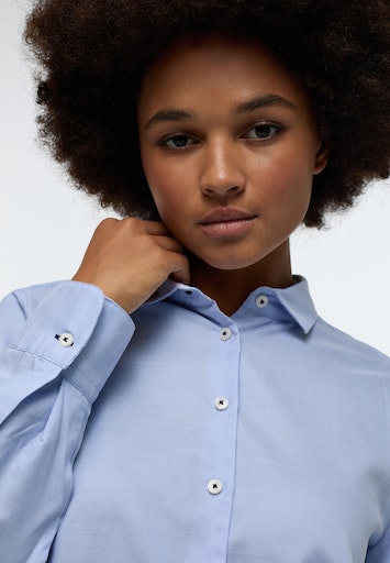 Komplettiert Ihr Outfit und darf in keiner Garderobe fehlen: Diese vorgewaschene, bügelleichte Hemdbluse überzeugt durch einen smarten Look.Die Webart Oxford, aus 70% Baumwolle und 30% Lyocell, ist weich und gleichzeitig kräftig gewebt und besticht durch eine dichte, stark strukturierte Optik.Durch den Prozess der Garment-Waschung werden Einlaufwerte minimiert und das Produkt bekommt einen weichen Griff und eine leicht verwaschene Optik.Die moderne Passform sorgt dafür, dass diese Hemdbluse, mit einer Rückenlänge von 72 cm, weniger eng und eher leger anliegt und dadurch einen optimalen Tragekomfort bietet.Das Uni-Muster und die detailverliebten Patchungen verleihen eine modische Nuance, der Hemdblusen-Kragen unterstreicht den klassischen Charakter.Noch heute bequem online bestellen und sich auf die Lieferung freuen!