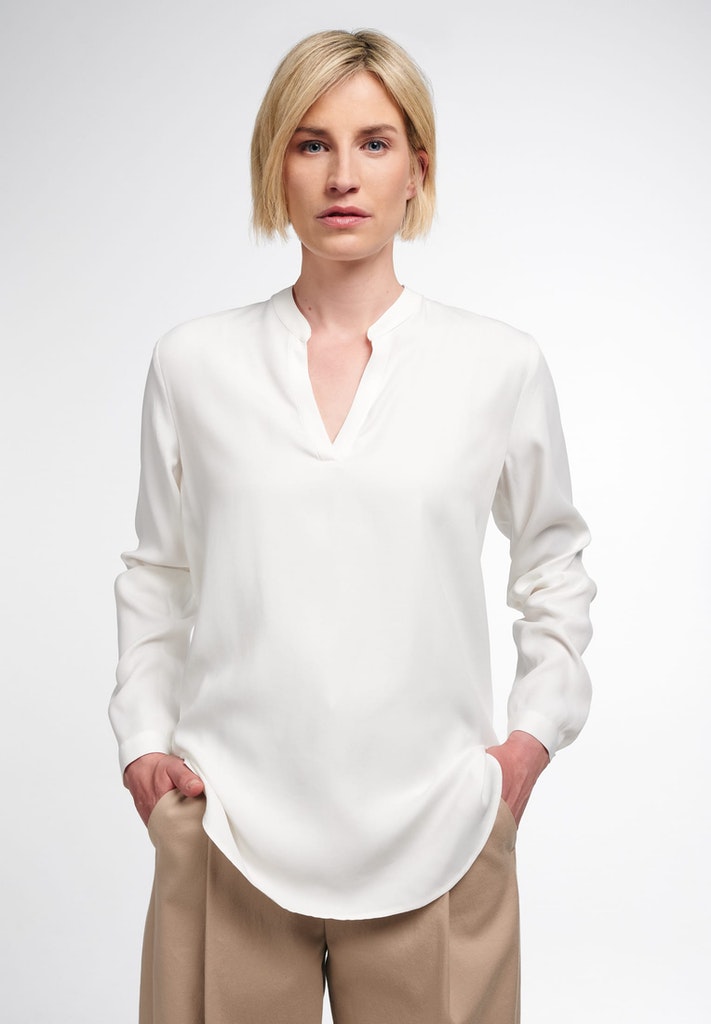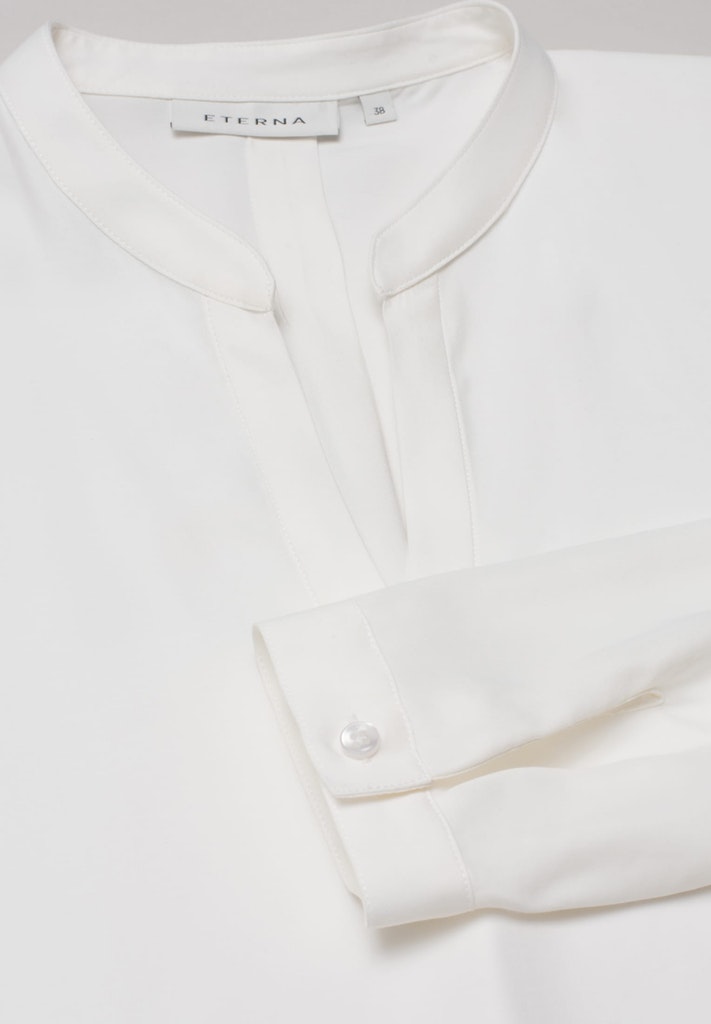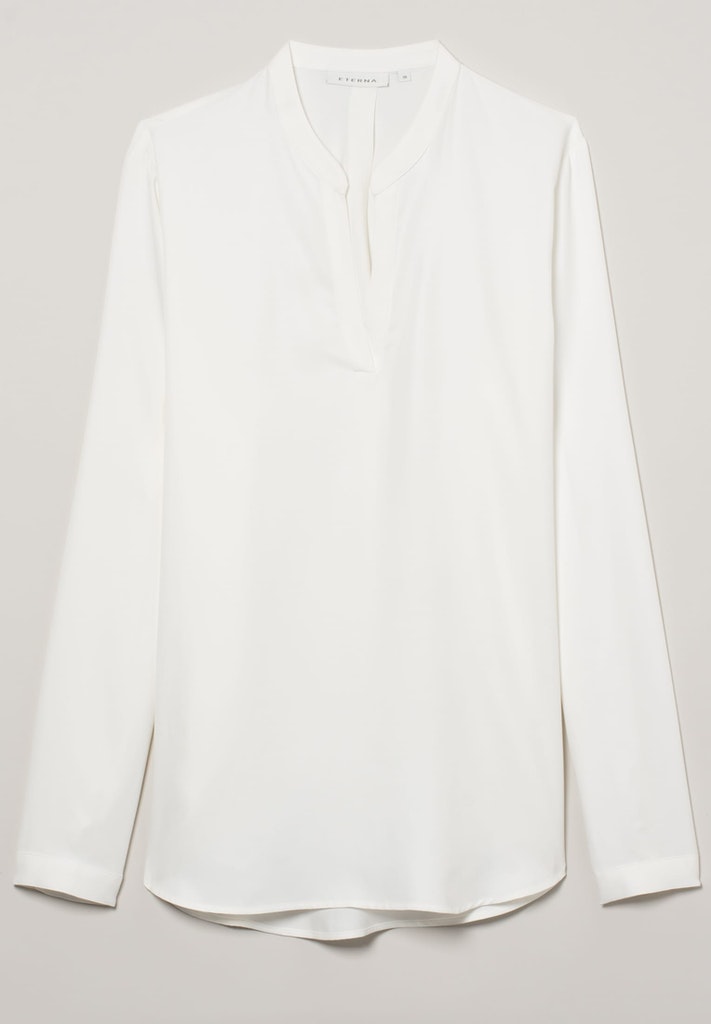 Für die besonderen Ansprüche! Mit dieser unifarbenen Langarm-Tunika bringen Sie Stil und guten Geschmack in Ihre Garderobe. Der kleine Stehkragen dieser unifarbenen Tunika, geht in einen V-Ausschnitt über, der keck etwas Haut blitzen lässt. Diese Schlupfbluse weist eine Rückenlänge von 70 cm auf und betont, durch die leichte und weich fließende Viskose-Qualität (100% Viskose), perfekt Ihre weibliche Silhouette. Eine Modern Classic Bluse von ETERNA ist die sichere Wahl zu jeder modischen Gelegenheit und lässt sich unkompliziert und stilsicher in jedes Outfit integrieren. Bestellen Sie noch heute - Sie werden diese zeitlose Blusentunika einfach lieben!