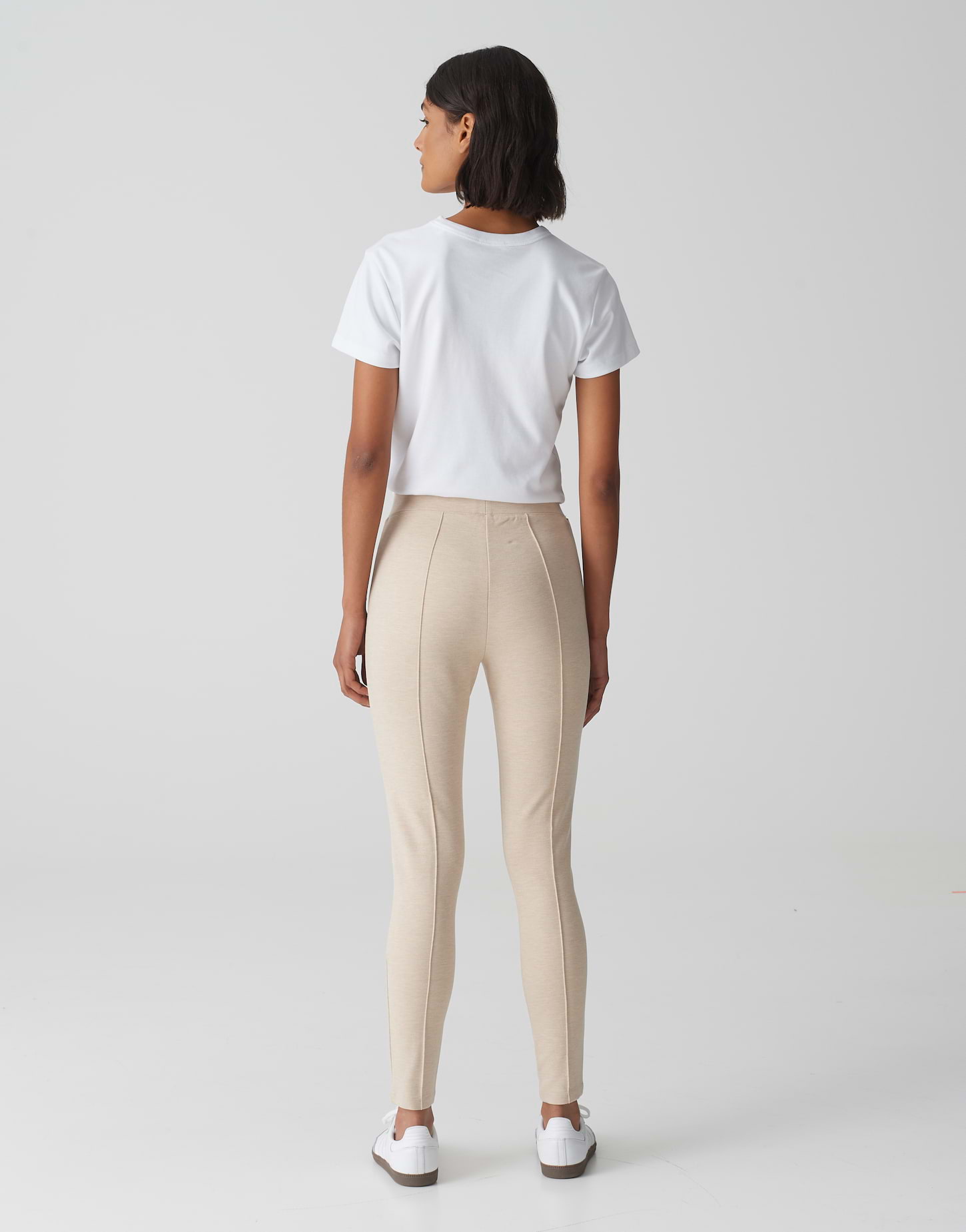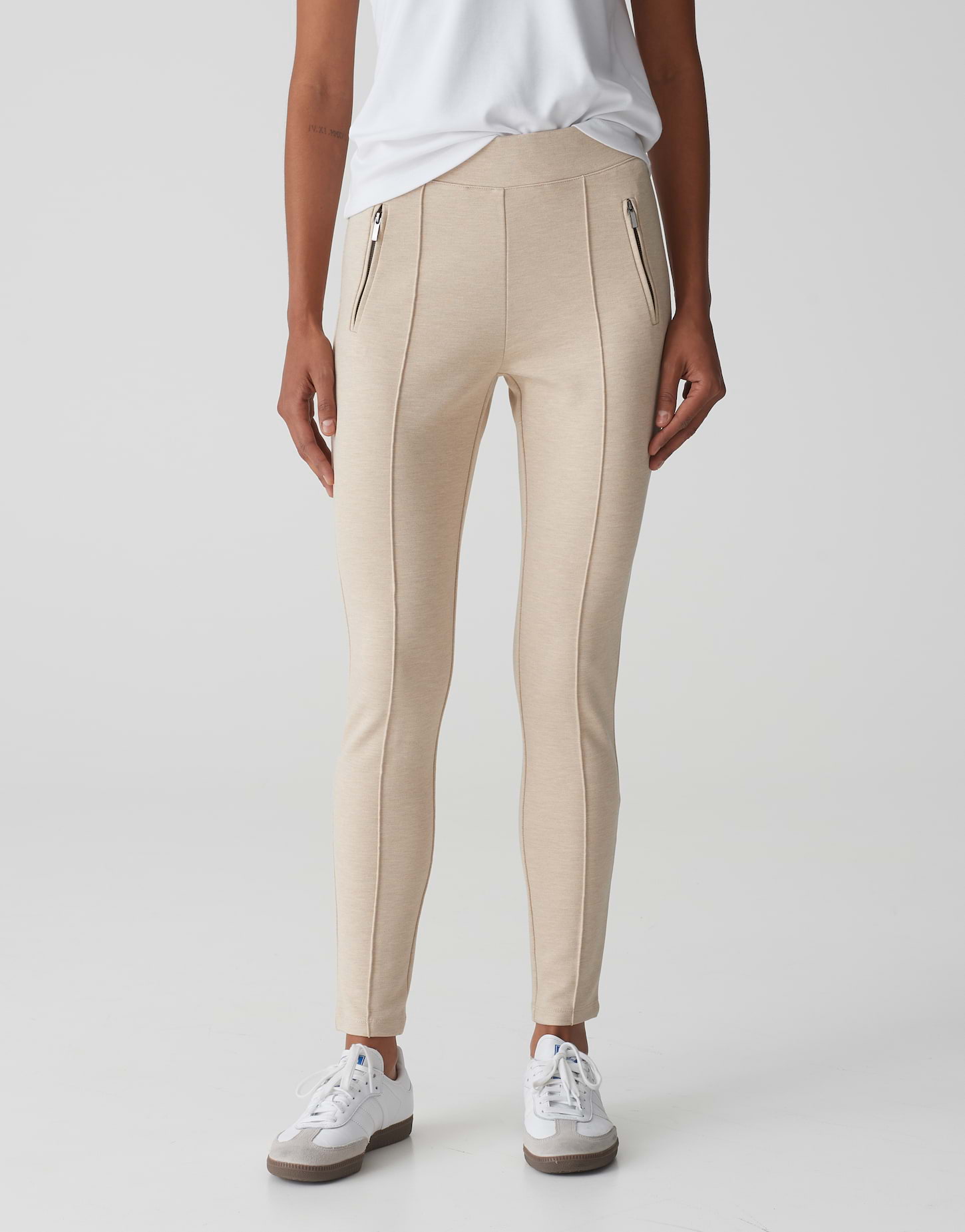 körperbetonende Passform, schmal am Oberschenkel, sehr schmaler Beinverlauf, mittlere Bundhöhe, Beininnenlänge ca. 70 cm in jeder Größe, Model Größe 179 cm - trägt Größe 34, Jersey, fester Griff, formstabil, elastischer Stoff, elastischer Gummibund, seitliche Eingrifftaschen mit Zipper, Biese vorne und hinten
