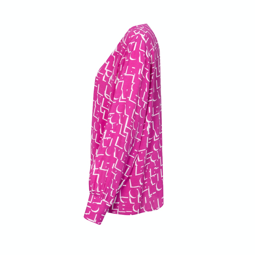 Bluse V-Ausschnitt leichter Puffärmel mit Druck
