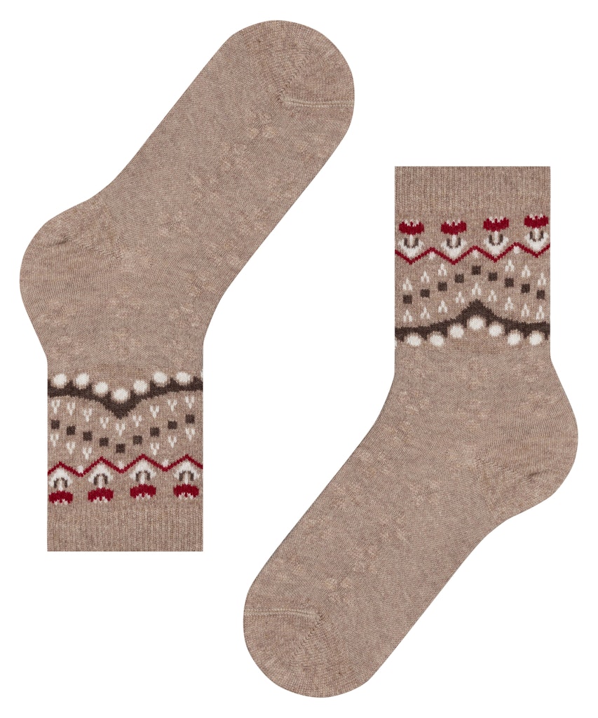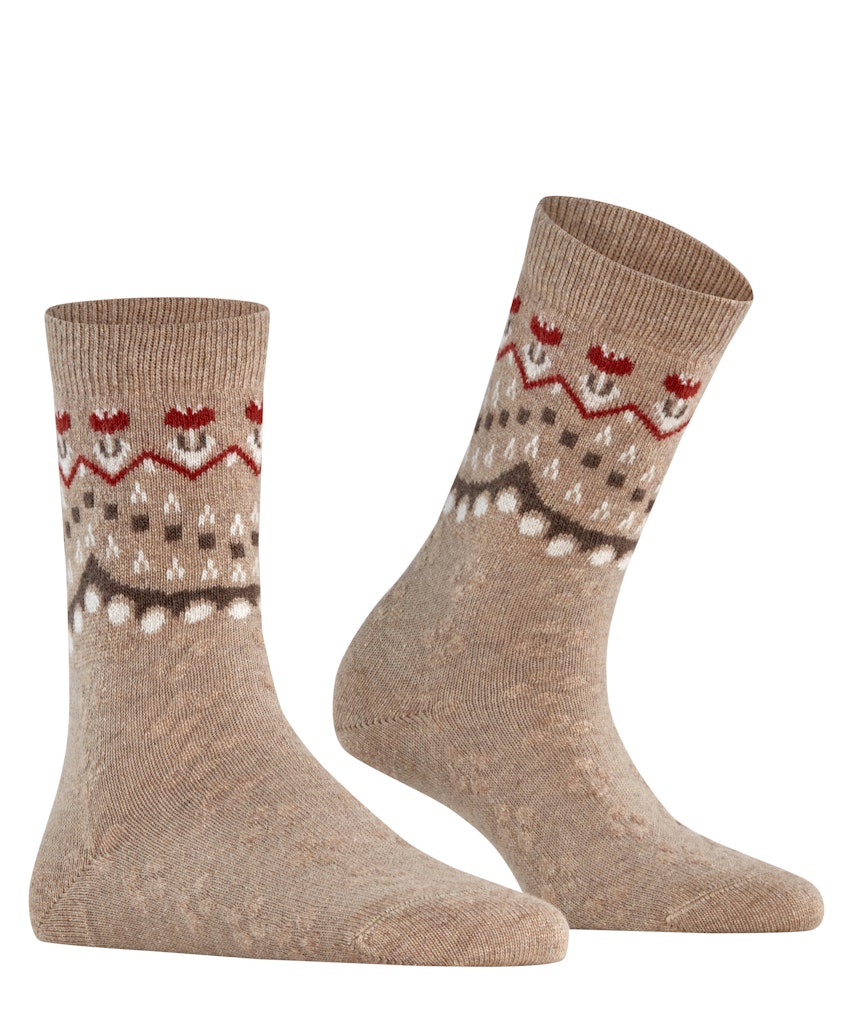 Ein Must-Have für die Winter-Saison: Der Norweger. Dieser luxuriöse und komfortable Strumpf vereint die bewährte FALKE Cosy Wool-Qualität mit einer modernen Interpretation der Norweger-Optik. Das stilvolle Design verbindet das klassisch winterliche Volksmotiv mit zarten, femininen Akzenten, wie floralen Elementen und dezenten Verzierungen. Dank der nachhaltigen Materialkomposition aus Merinowolle, Kaschmir und Viskose wird ein besonders weiches und wärmendes Tragegefühl gewährleistet. Verstärkte Belastungszonen sorgen zudem für eine hohe Langlebigkeit, während die perfekte FALKE-Passform den Komfort abrundet.