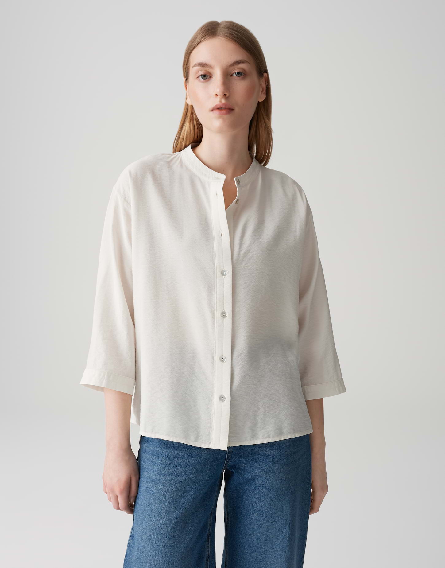 weite Passform, gerader Schnitt, überschnittene Schulter mit 3/4 Arm, Rundhalsausschnitt, Rückenlänge ca. 61 cm bei Größe 36, Farbe natural glaze: Model Größe 172 cm - trägt Größe 36, Farbe coal blue: Model Größe 177 cm - trägt Größe 36, Webware, enthält nichttextile Teile tierischen Ursprungs, Crash Optik, leichter Stoff, leichte Transparenz im hellen Farbton, fließender Fall, Knopfleiste, Schlitze in den Seiten, Perlmuttknöpfe, Passe im Rücken
