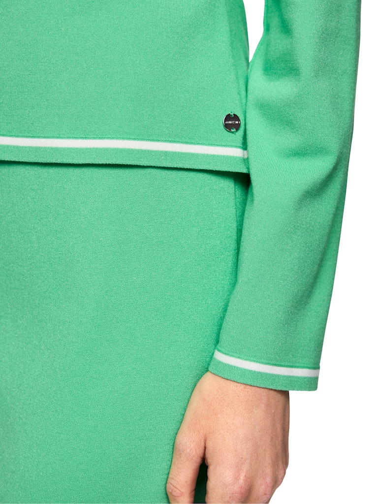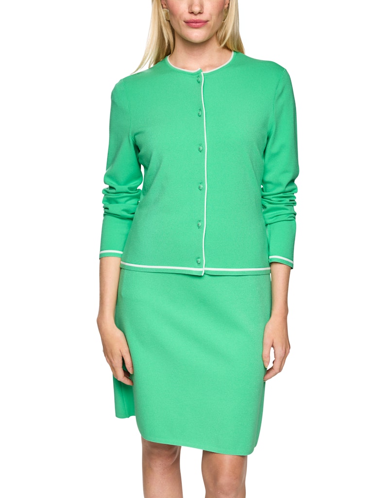 Feinstrick Cardigan "Rethink Together"|Zeitloser Cardigan aus weichem Viskosemix im feinen Strick. Mit Rundhalsausschnitt, klassischem Knopfverschluss und kontrastfarbenen Details wird der Look modern akzentuiert. Das Modell ist "Knitted in Germany": Das Verstricken der Garne auf hochmodernen Strickmaschinen und die Veredelung der Stoffe geschehen am Standort Deutschland. Der Cardigan trägt das Nachhaltigkeitslabel "Rethink Together".|Leicht tailliert|Knitted in Germany|Rethink Together|Knopfverschluss|Das Model ist 179 cm groß und trägt N3/38.