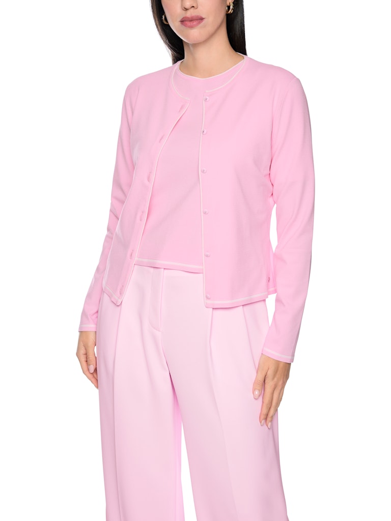 Feinstrick Cardigan "Rethink Together"|Zeitloser Cardigan aus weichem Viskosemix im feinen Strick. Mit Rundhalsausschnitt, klassischem Knopfverschluss und kontrastfarbenen Details wird der Look modern akzentuiert. Das Modell ist "Knitted in Germany": Das Verstricken der Garne auf hochmodernen Strickmaschinen und die Veredelung der Stoffe geschehen am Standort Deutschland. Der Cardigan trägt das Nachhaltigkeitslabel "Rethink Together".|Leicht tailliert|Knitted in Germany|Rethink Together|Knopfverschluss|Das Model ist 179 cm groß und trägt N3/38.