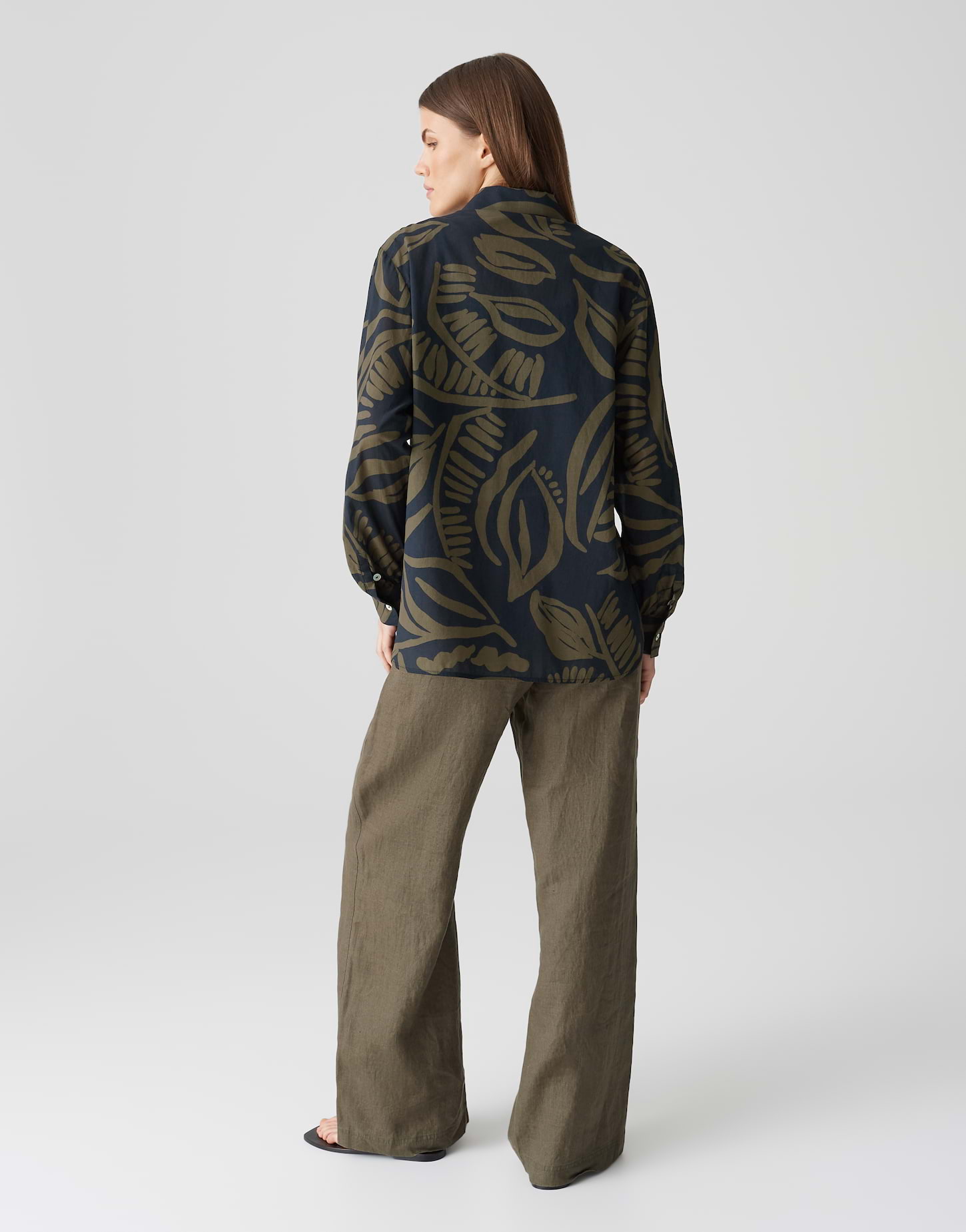 lockere Passform, gerader Schnitt, normale Länge, Langarm, Hemdblusenkragen, Rückenlänge ca. 72,5 cm bei Größe 36, Model Größe 176 cm - trägt Größe 36, Webware, enthält nichttextile Teile tierischen Ursprungs, natürlicher Griff, fließender Fall, floraler Print, lange Knopfleiste, Perlmuttknöpfe, Aufschlag mit Riegel am Ärmel, klassische Manschetten