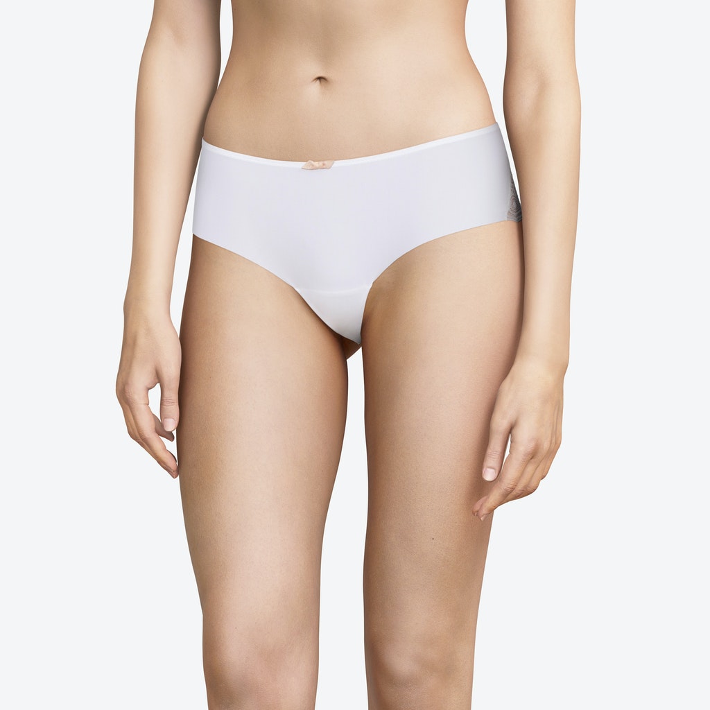 * Hipster aus zwei verschiedenen Materialien: Vorne komplett aus besonders weichem, blickdichten Stoff, Rückseite aus grafischer Spitze