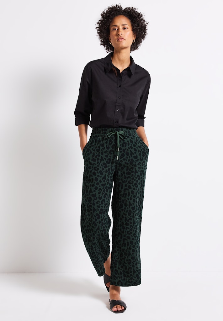Diese Hose von Street One für Damen bringt mit grafischem Muster und weiter Passform sommerliche Frische in deinen Look. Wide Legs, High Waist und der elastische Bund mit Tunnelzug sorgen für bequemen Sitz. Der leichte Musselin aus reiner Baumwolle fühlt sich angenehm luftig an. Sommerhose im Loose Fit High Waist und Wide Legs Elastischer Bund mit Tunnelzug Seitliche Taschen Reine Baumwolle Material: 100% Baumwolle
