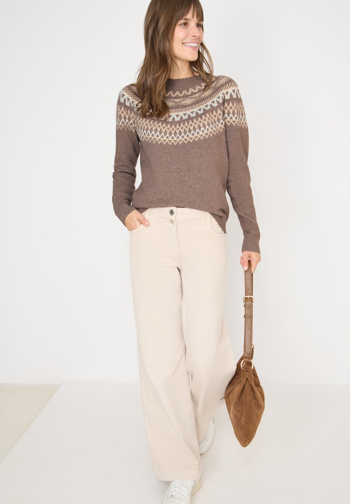 Der Jacquard Pullover von CECIL für Damen bringt mit seinem Norweger-Muster winterliche Gemütlichkeit in deinen Look. Die weiche Strickqualität und der klassische Rundhalsausschnitt sorgen für angenehmen Tragekomfort. Ein stilvoller Eyecatcher für kalte Tage. Jacquard Pullover im Norweger-Look Rundhalsausschnitt Langarm mit Rippbündchen Jacquard Muster Weiche Strickqualität Material: 37% Baumwolle, 34% Polyacryl, 26% Polyester, 3% Elasthan