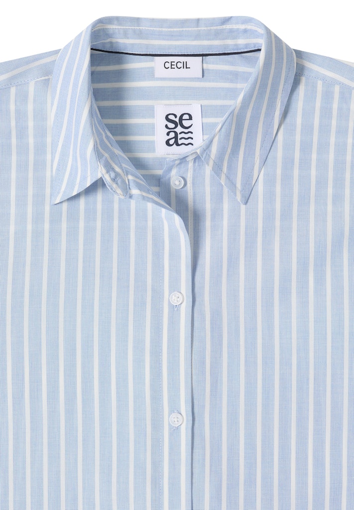 Die Hemdbluse mit feinem Streifenmuster und klassischem Hemdkragen von CECIL für Damen ist ein moderner Klassiker. Reine Baumwolle sorgt für hohen Tragekomfort, während Knopfleiste und Bündchen mit Knopf den Look abrunden. Ideal für Business oder Freizeit. Baumwollbluse Casual Hemdkragen Langarm Modern Material: 100% Baumwolle