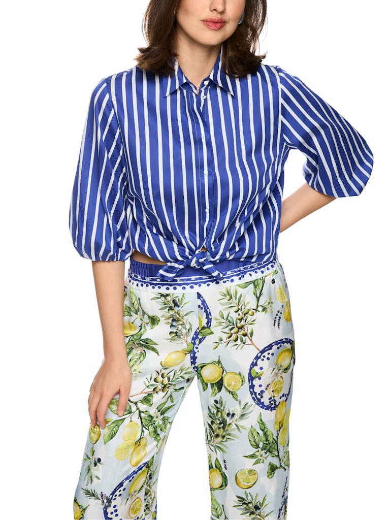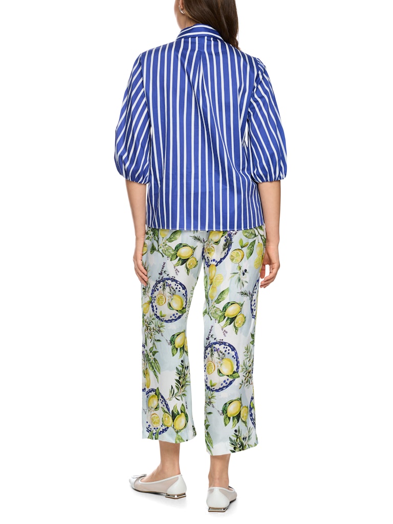 Gestreifte Baumwoll-Hemdbluse|Gestreifte Hemdbluse aus reiner Baumwolle in weiter, bequemer Form. Die durchgehende Leiste mit Schmuckknöpfen verleiht ihr einen klassischen Look, während dreiviertellange Ärmel mit schmalem Gummiband für einen modernen, lässigen Abschluss sorgen. Die hochwertige Baumwollqualität bietet angenehmen Tragekomfort.|Weit geschnitten|Hemdkragen|3/4 Ärmel|Durchgängige Knopfleiste|Das Model ist 179 cm groß und trägt N3/38.