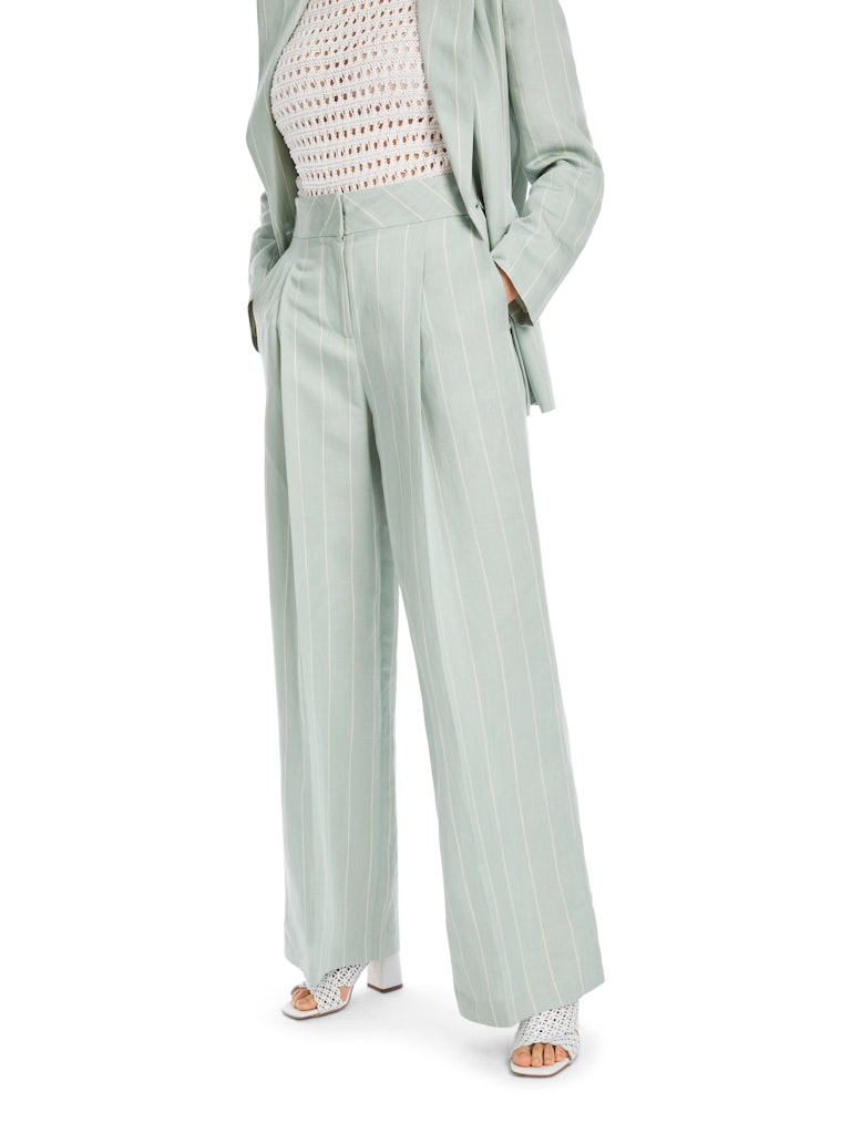 Gestreifte Puddle Pants Modell WICHITA|Modell WICHITA ist eine weite Bundfaltenhose im Puddle-Pants-Style: Die Taille ist hoch und das Bein extralang. Aus edlem Viskose-/Leinen-Mix, ist das Modell weich fließend und liegt kühl auf der Haut. Cool, der Nadelstreif. Wirkt toll im Total-Look zum passenden Blazer.|Hohe Taille|Flügeltaschen|Bügelfalte|WICHITA - WIDE FIT - HIGH - Beinlänge: 34"|Das Model ist 179 cm groß und trägt N3/38.