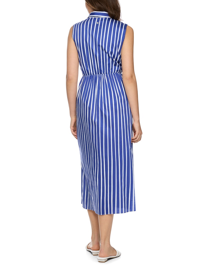 Gestreiftes Baumwoll-Kleid|Das wadenlange Baumwollkleid im Streifenmuster vereint Funktionalität mit femininem Design. Das ärmellose Oberteil in Überkreuz-Optik mit V-Ausschnitt geht in eine Taille mit schmalem Gummizug über, die das leicht ausgestellte Rockteil betont. Ein Beinschlitz und praktische Eingrifftaschen ergänzen den Look. Ein kurzer seitlicher Reißverschluss sorgt für einfaches Anziehen.|Leicht ausgestelltes Rockteil|Überkreuztes Oberteil|Beinschlitz|Ohne Innenfutter|Das Model ist 179 cm groß und trägt N3/38.