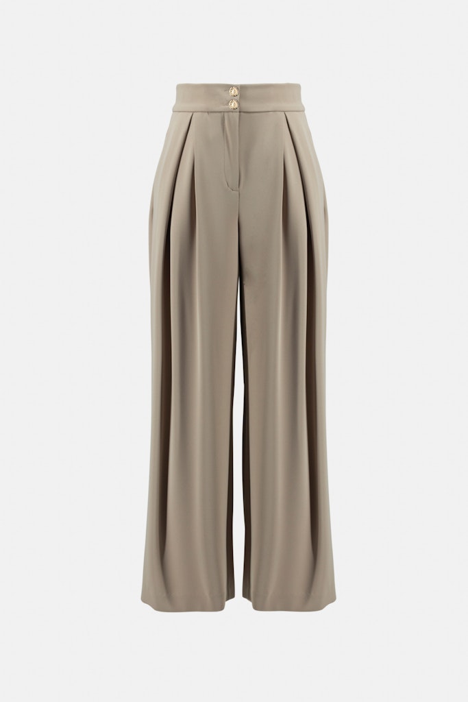 Die ausgefallene Hose mit weitem Bein sorgt für einen modischen Auftritt. Sie schmeichelt der Figur und garantiert den ganzen Tag lang ein angenehmes Tragegefühl. Für einen smarten Büro-Look kombiniert man sie mit einer Bluse und hohen Schuhen, lässig wi