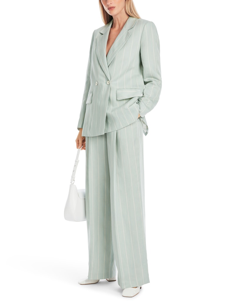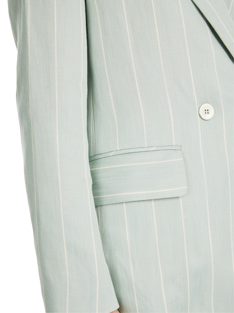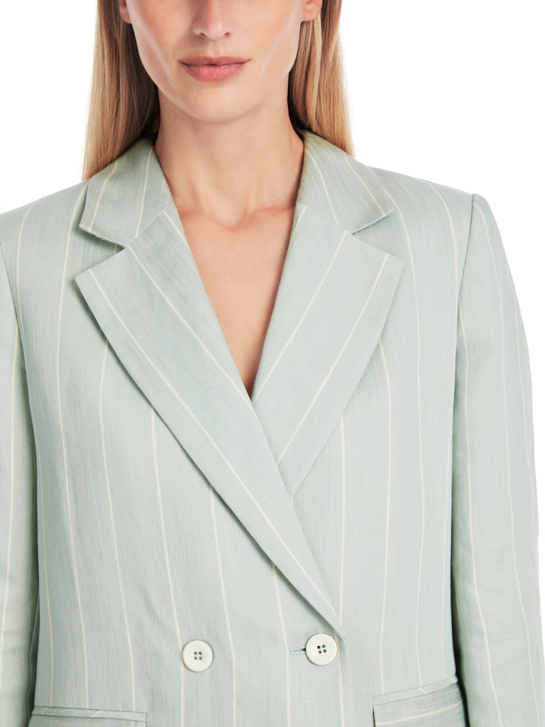 Großer Blazer in Nadelstreif|Trendiger Blazer in edlem Viskose-/Leinen-Mix. Das Modell ist groß geschnitten und mit Wiener Nähten modelliert. Die Front ist zweireihig, hat ein breites Revers und Pattentaschen. Futter sorgt für einen perfekten Sitz. Cool im Total-Look zur passenden Bundfaltenhose.|Weite Form|Wiener Nähte|Pattentaschen|Gehschlitz|Das Model ist 179 cm groß und trägt N3/38.