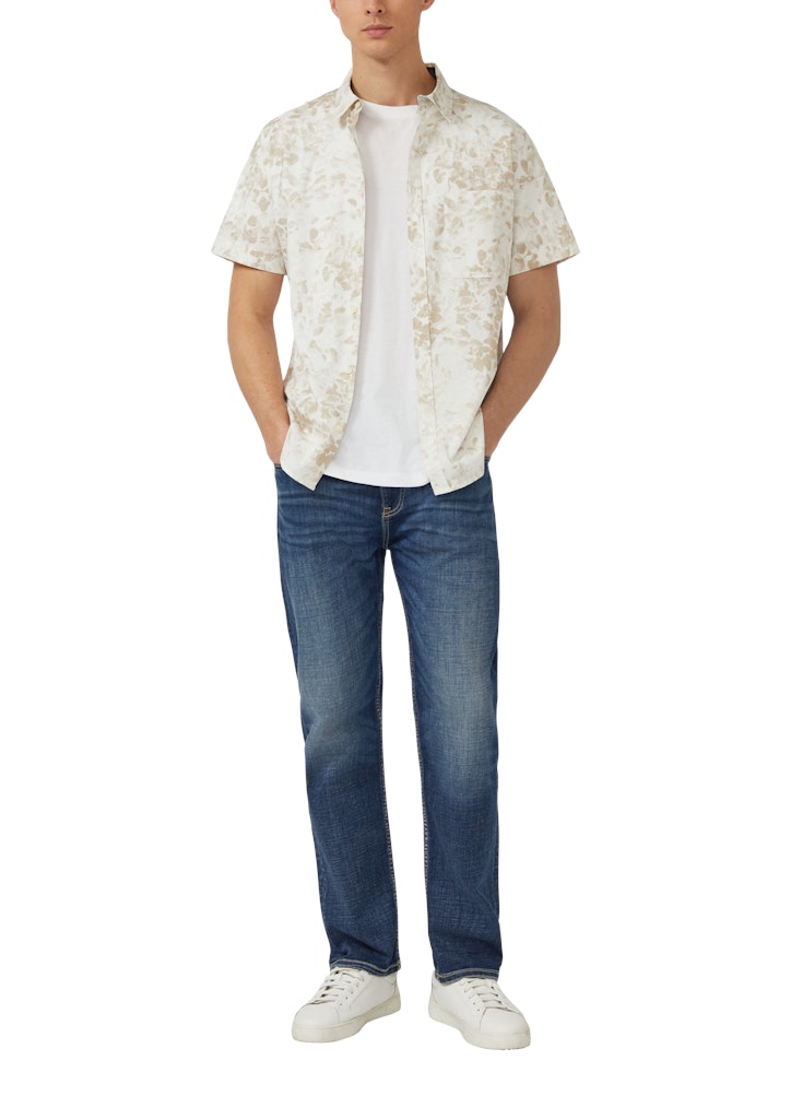 Slim Fit: Kurzarm-Hemd mit All-over-Print und Brusttasche