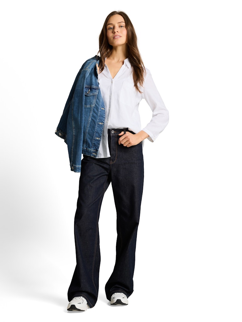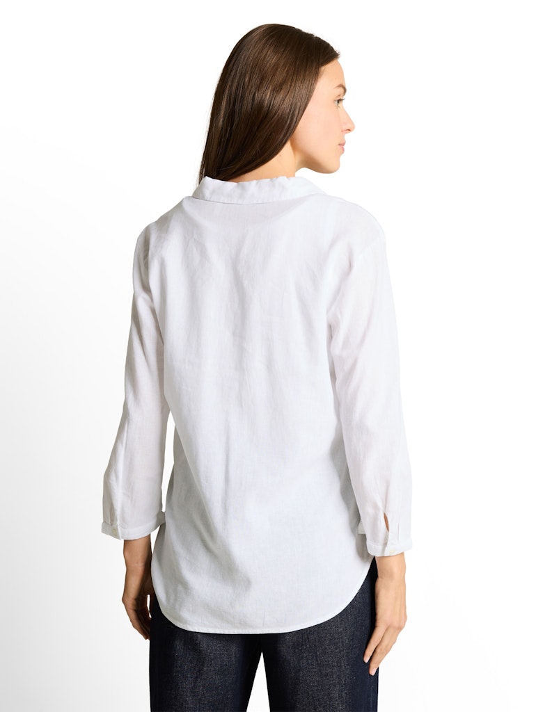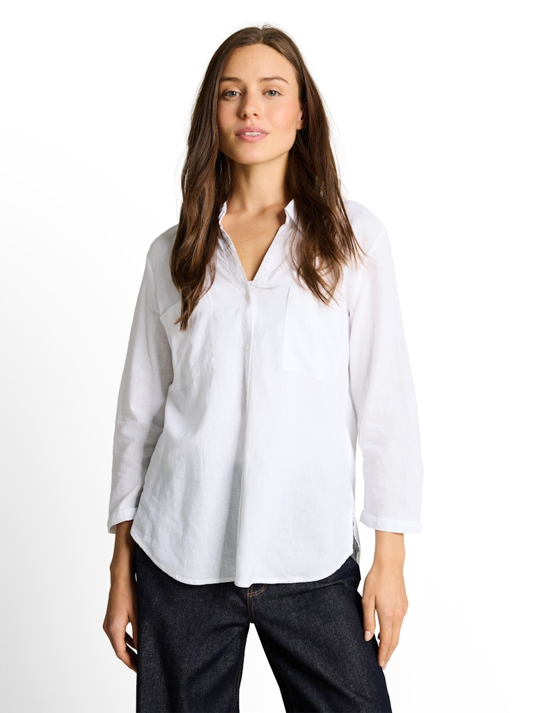Leinenbluse mit aufgesetzten Brusttaschen und Seitenschlitzen. Leinenanteil eignet sich ideal im Frühling und Sommer für ein leichtes und kühlendes Tragegefühl.