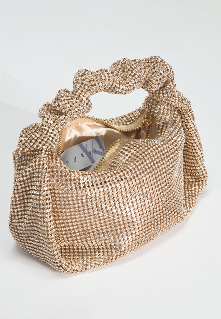Henkeltasche aus glänzendem Strassgewebe