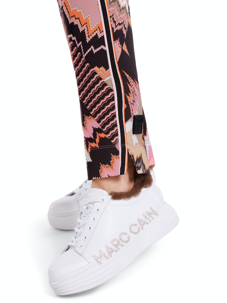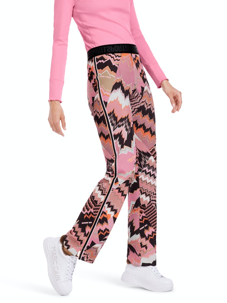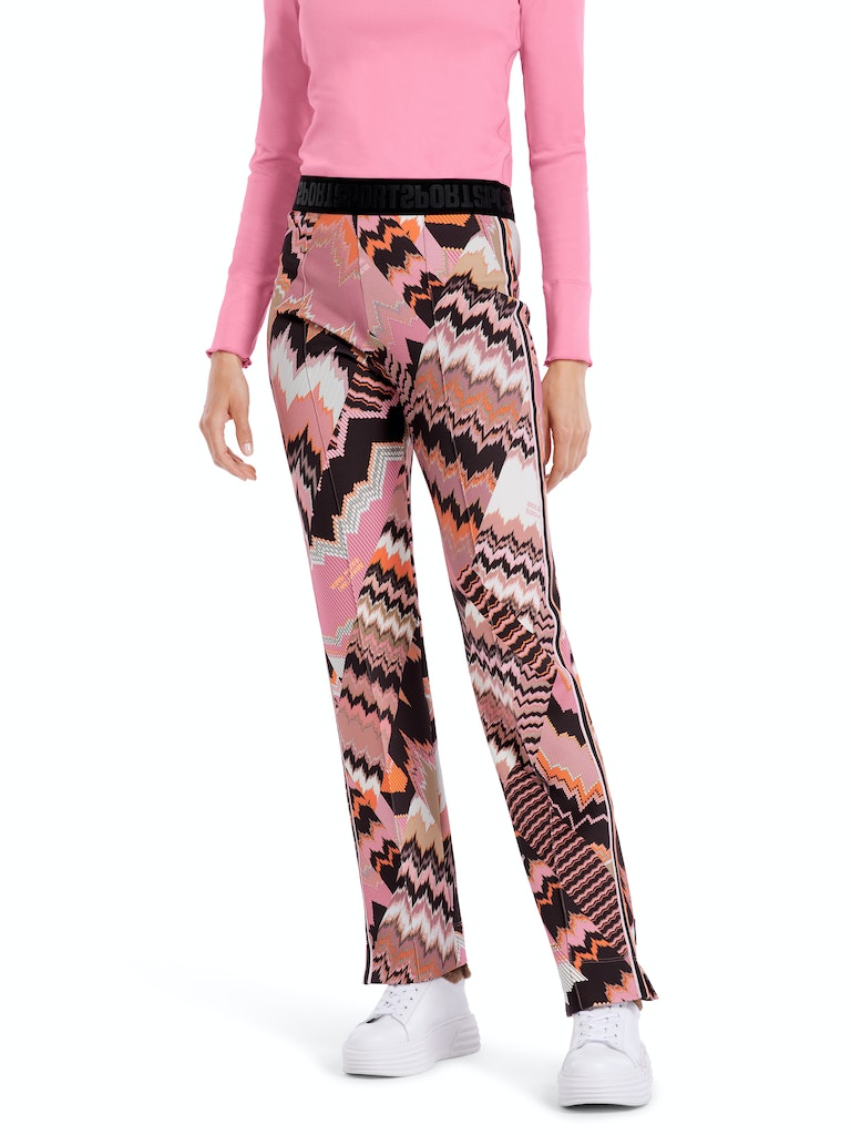Hose FOSHAN im Fantasieprint|Diese sportiv geschnittene Hose FOSHAN ist aus weichem Material mit Elasthan gefertigt. Eyecatcher ist der farbenfrohe Fantasieprint. Ebenso zieht auch der gestreifte Galonstreifen die Blicke an. Dank elastischem Bund mit MC Sports Verzierung sitzt die Hose den ganzen Tag über bequem. Für eine seriöse Note sorgt die abgesteppte Bügelfalte am schlanken Bein.|Farbe: bright orchid|Feminine fit/Regular waist|Made in Europe|Das Model ist 179 cm groß und trägt N3/38.|Beinlänge: 32''||||