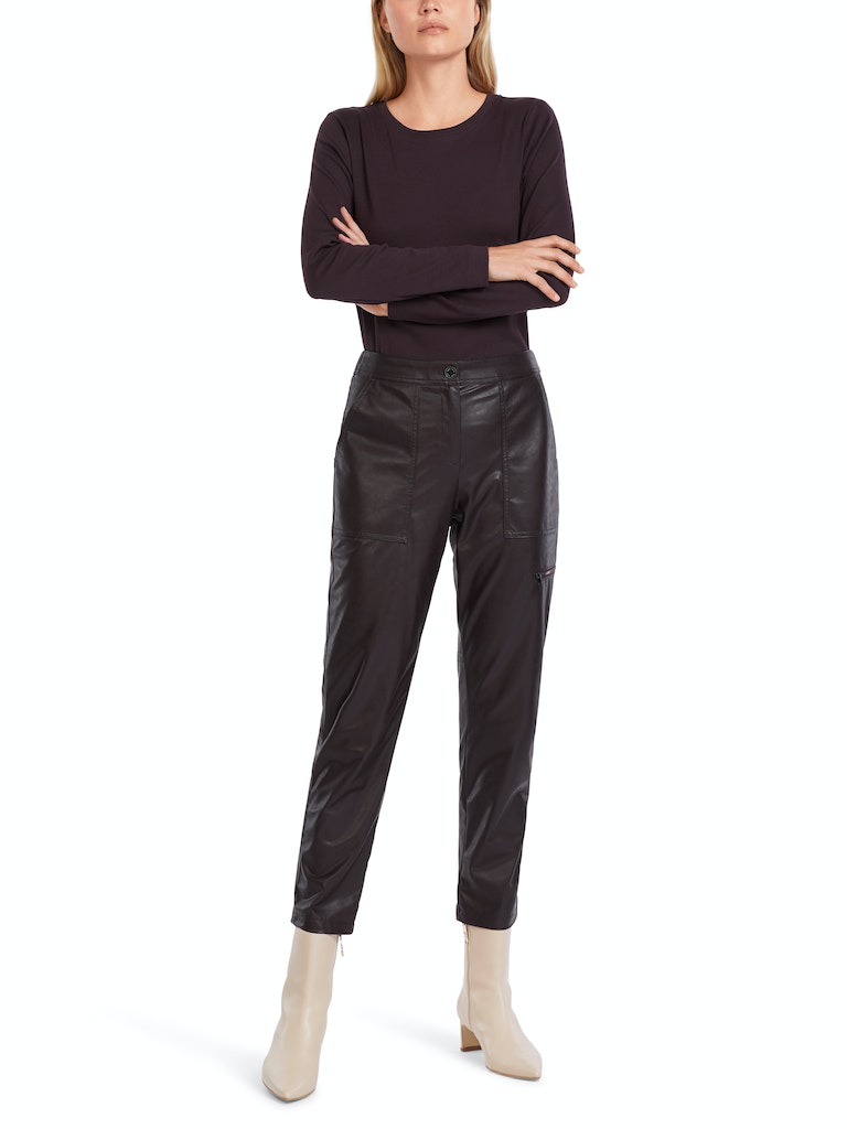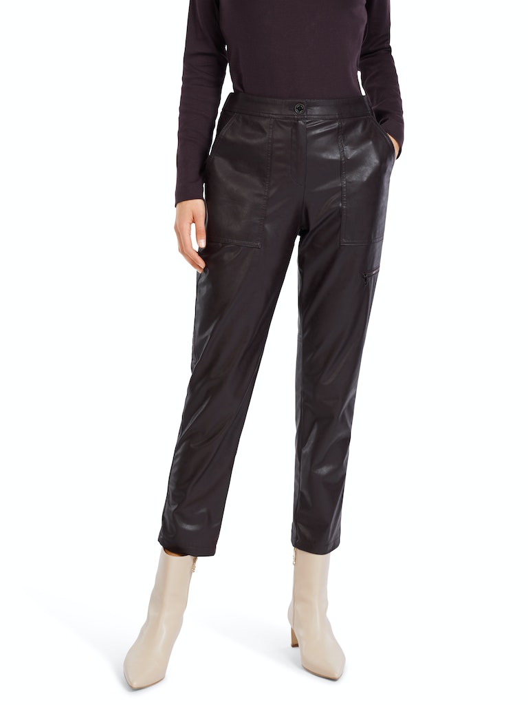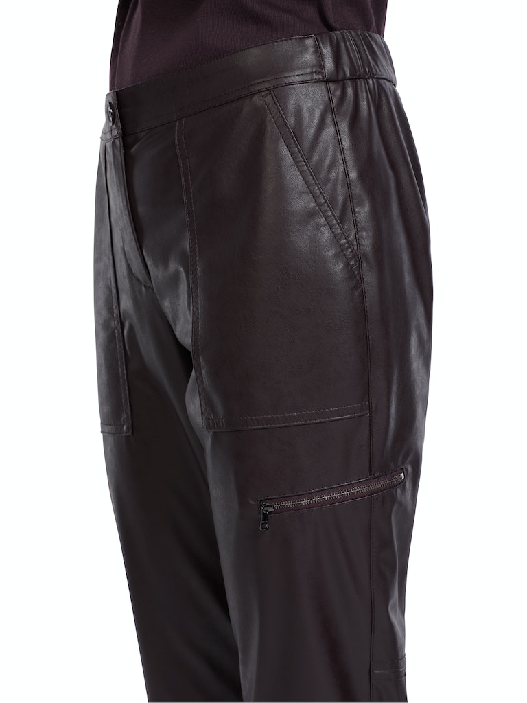 Hose FRANCA im Lederlook|Hose FRANCA in edlem Glanz dank beschichtetem Material. Mit ihrem Lederlook setzt diese Hose hochwertige Akzente. Sie kommt im femininen Fit. Für mehr Komfort besitzt der regulär hohe Bund Stretcheinsätze. Seitentaschen und eine seitliche Reißverschlusstasche bieten Platz für Utensilien. Geschlossen wird die Hose mit Zipp und Knopf.|Farbe: shaded plum|Feminine Fit / Regular Waist|Mit Reißverschlusstasche|Das Model ist 179 cm groß und trägt N3/38.|Beinlänge: 28''||||