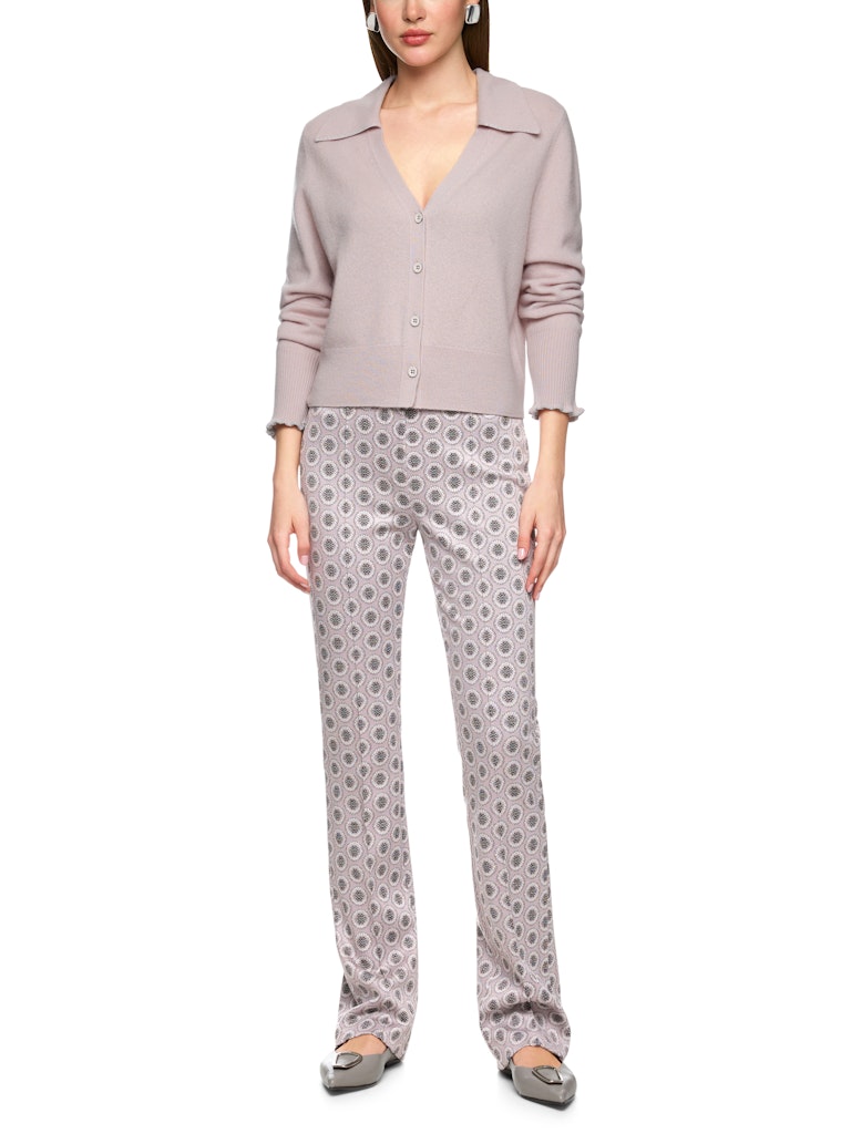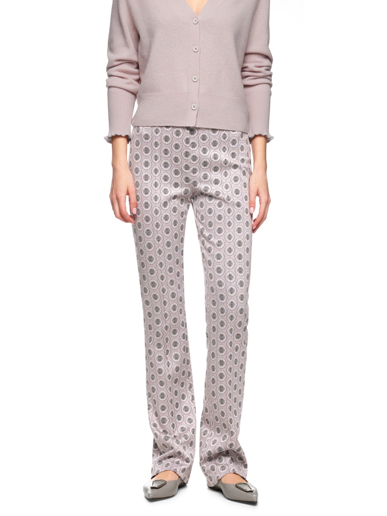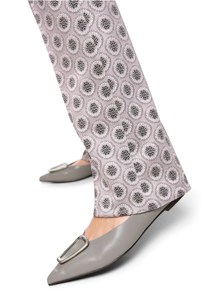Hose FREDERICA aus Scubajersey|Die Hose Modell FREDERICA überzeugt mit ihrem komfortablen Schlumpfdesign mit Gummibund in regulärer Höhe. Der Blickfang ist das elastische Scubajersey mit grafischem Print. Das schmale, gerade Bein erhält durch die abgesteppte Bügelfalte seine Form. Der feminine Schnitt sorgt für die perfekte Passform.|Feminine Form|Abgestellte Bügelfalte|Knitterfreier Stoff|FREDERICA - FEMININE FIT - REGULAR - Beinlänge: 32"|Das Model ist 179 cm groß und trägt N3/38.