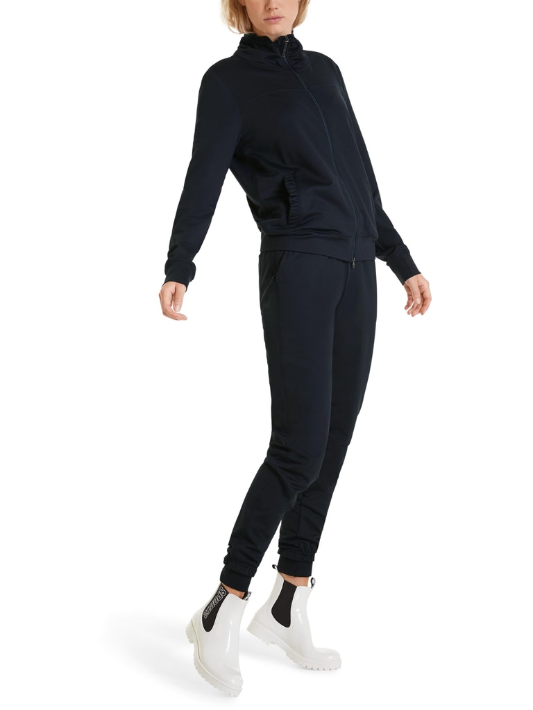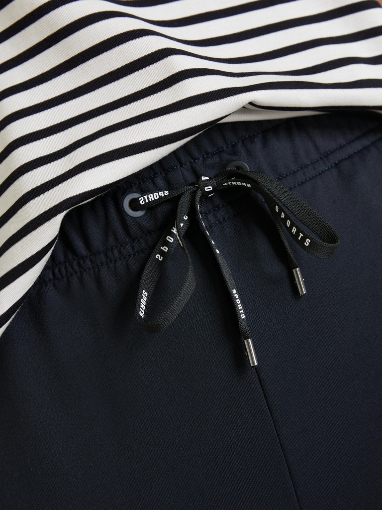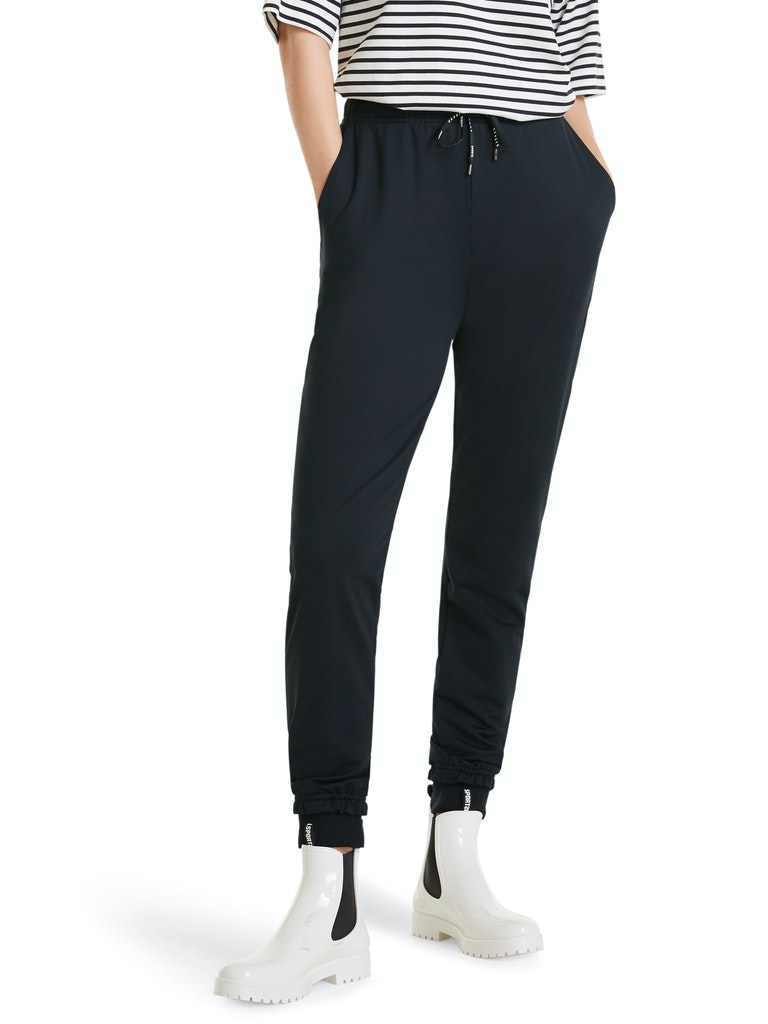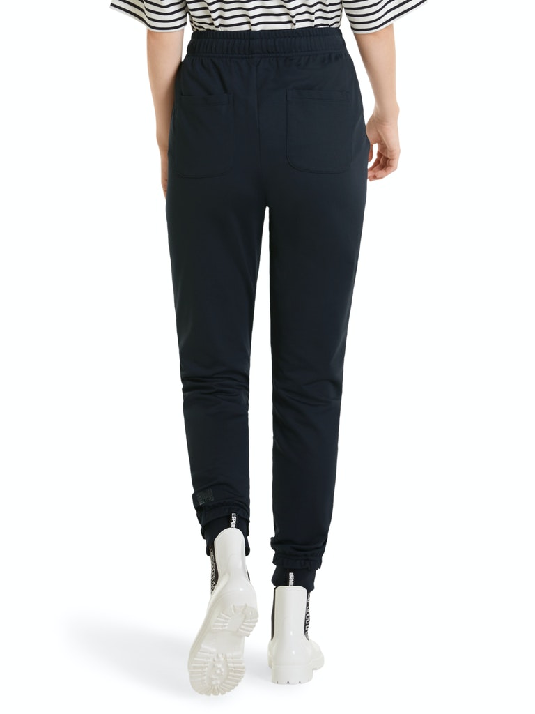 Hose mit Mini-Rüschen|Die Hose ist aus Baumwollstretch gefertigt und bietet daher höchsten Tragekomfort. Der breite, elastische Bund mit Sports-Kordel sorgt für eine perfekte und bequeme Passform. Die Hose ist an den Beinabschlüssen mit Mini-Rüschen versehen. Insgesamt vier Taschen ergänzen den Style.|Farbe: midnight blue|Konische Form|Made in Europe|Das Model ist 179 cm groß und trägt N3/38.|||||