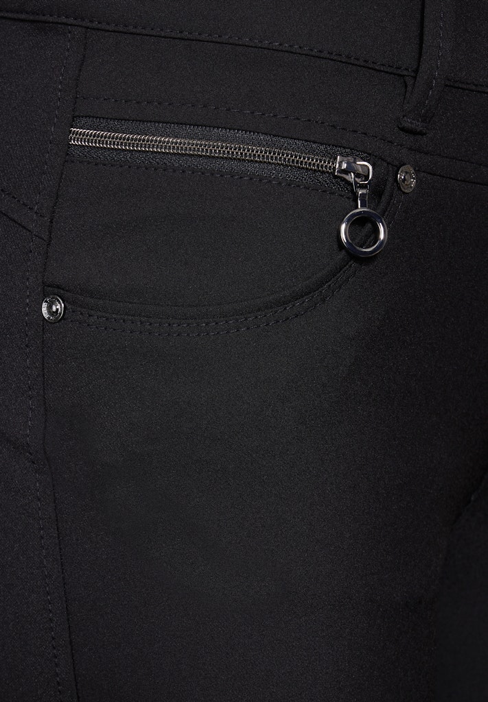 Die modische Hose mit Zipper Details von Street One für Damen im Style York begeistert mit coolen Akzenten. Der Mid Waist Schnitt und die Slim Legs unterstreichen deine Figur, während der Materialmix mit Stretchanteil für angenehmen Tragekomfort sorgt. Seitliche Taschen mit Reißverschluss verleihen der Hose eine besondere Note und machen sie zum vielseitigen Begleiter für viele Gelegenheiten. Damenhose im Slim Fit Mid Waist und Slim Legs Seitliche Taschen mit Reißverschluss Materialmix mit Stretchanteil Modisch und bequem Material: 88% Polyamid, 12% Elasthan