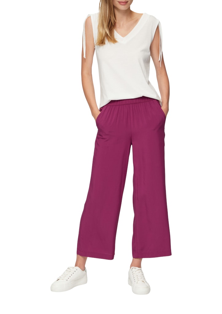 Entdecke die vielseitige Culotte aus fließender Viskose - der perfekte Begleiter für lässige Sommerlooks! Der weiche Stoff mit Elastikbund umschmeichelt deine Silhouette, während das weite Bein für Leichtigkeit sorgt. Die Eingrifftaschen sind praktisch und die Culotte-Länge macht sie zum idealen Piece für warme Tage. Style sie lässig mit Sandalen oder aufgepeppt mit Heels für einen Abendlook.
