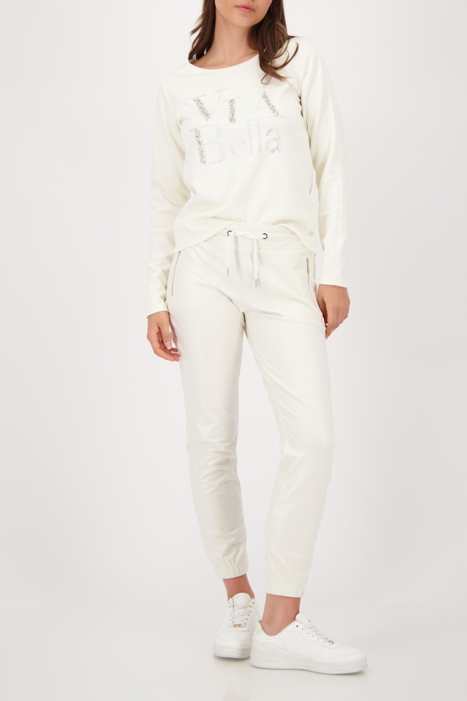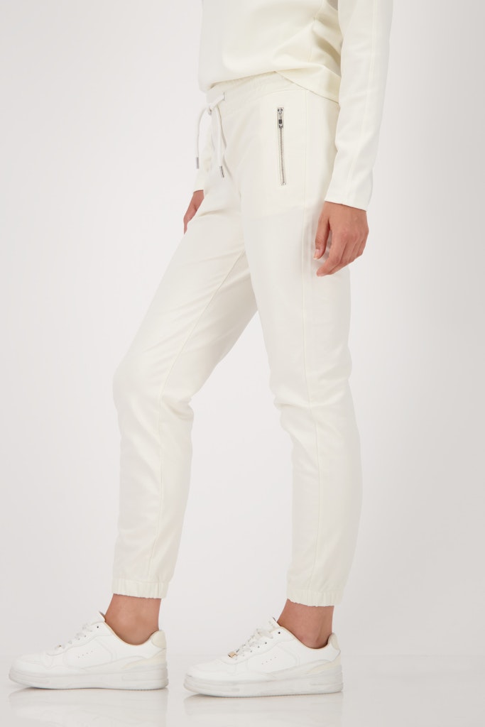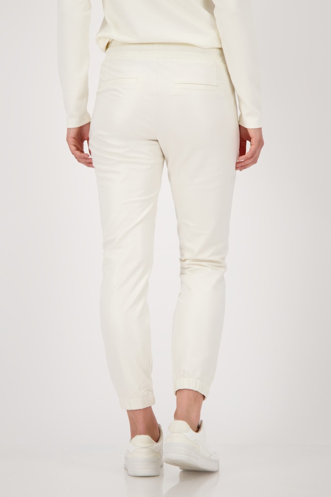 Diese Hose aus einer hochwertigen Baumwollmischung bietet ein elastisches Material in Lederoptik, einen elastischen Bund mit Bindeband und praktische Seitentaschen mit Reißverschluss.