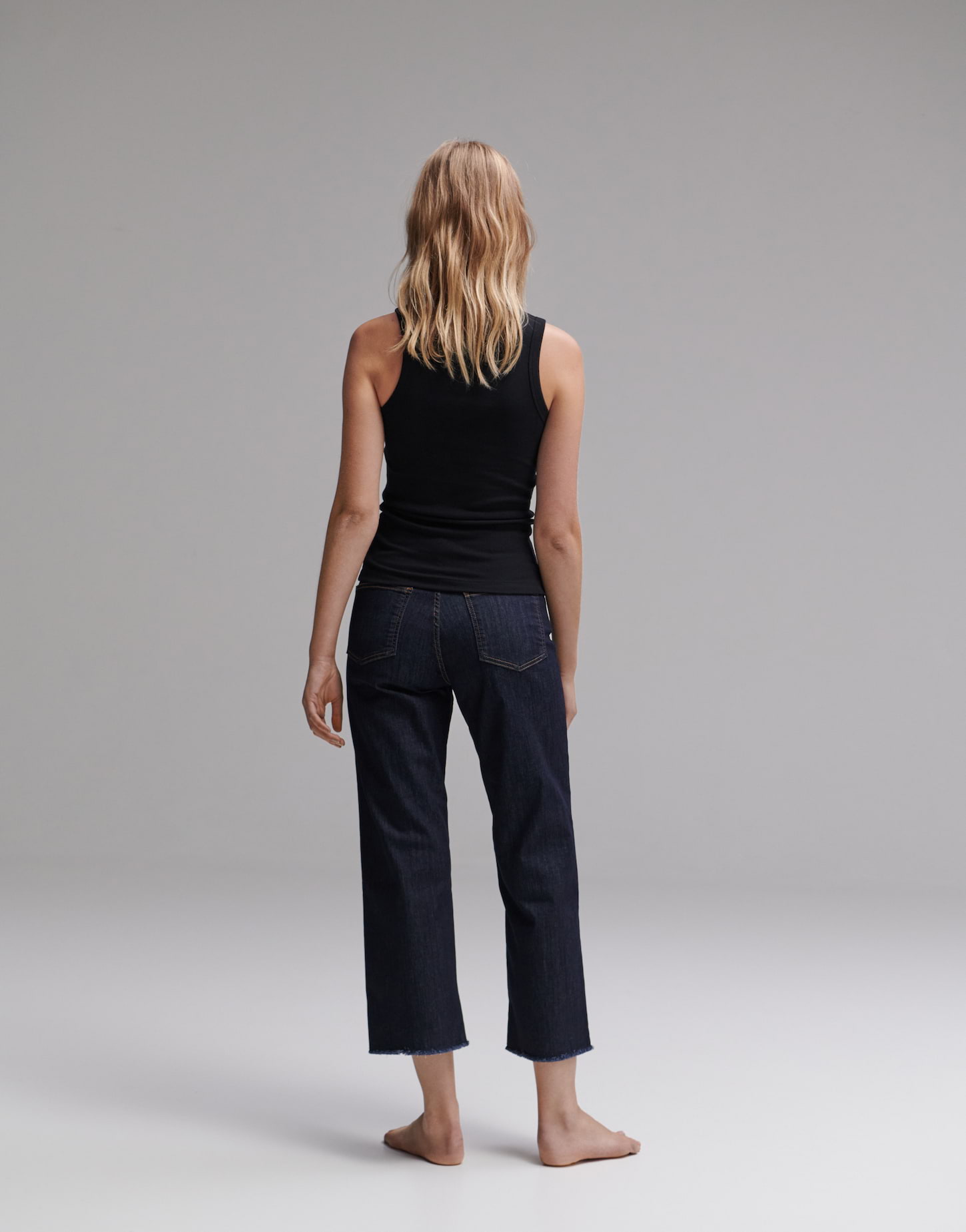schmale Passform, figurbetont geschnitten, Nullarm, Rundhalsausschnitt, Rückenlänge ca. 61 cm bei Größe 36, Model Größe 179 cm - trägt Größe 36, BCI Cotton Mix, weicher Griff, elastischer Stoff, feine Rippstruktur