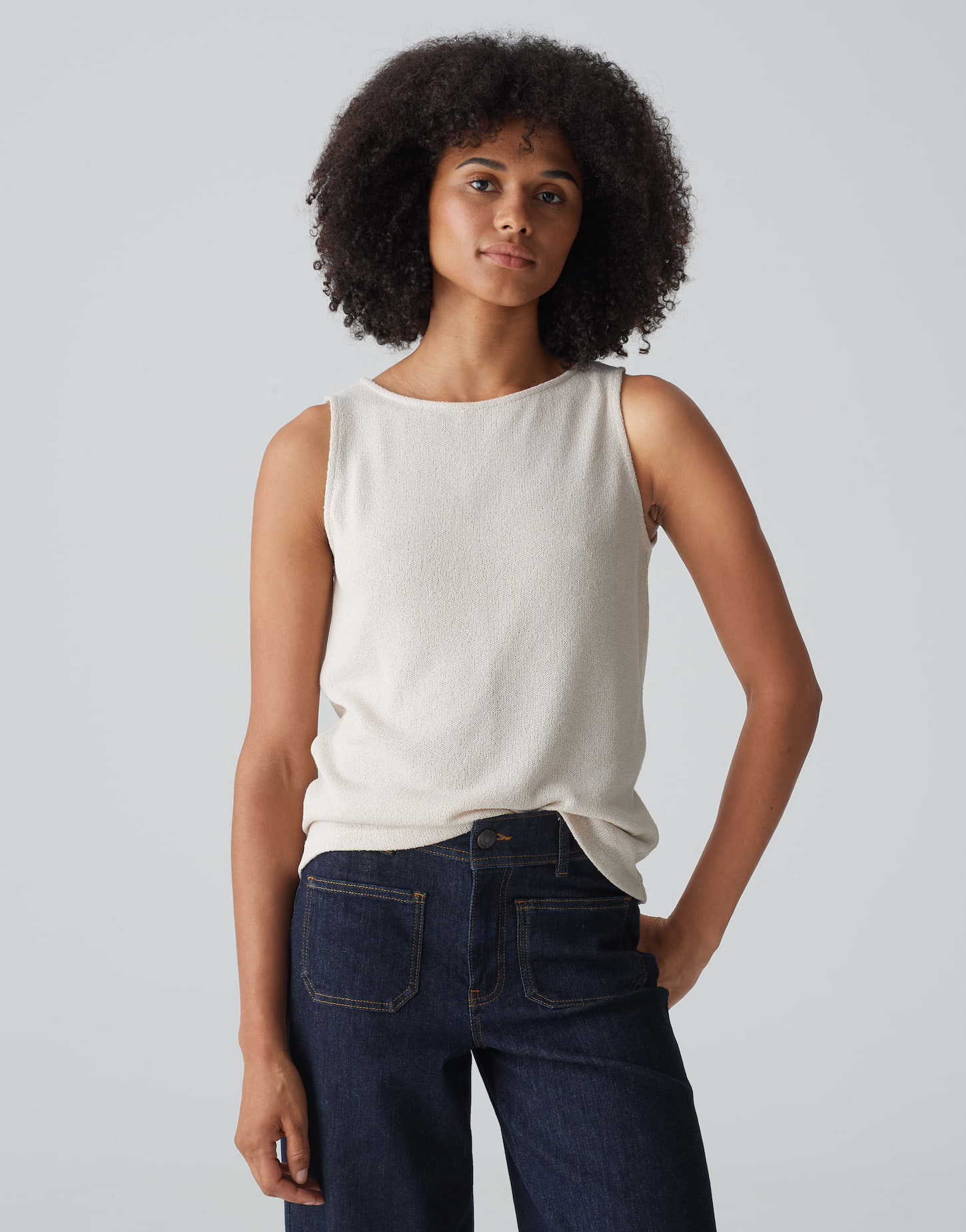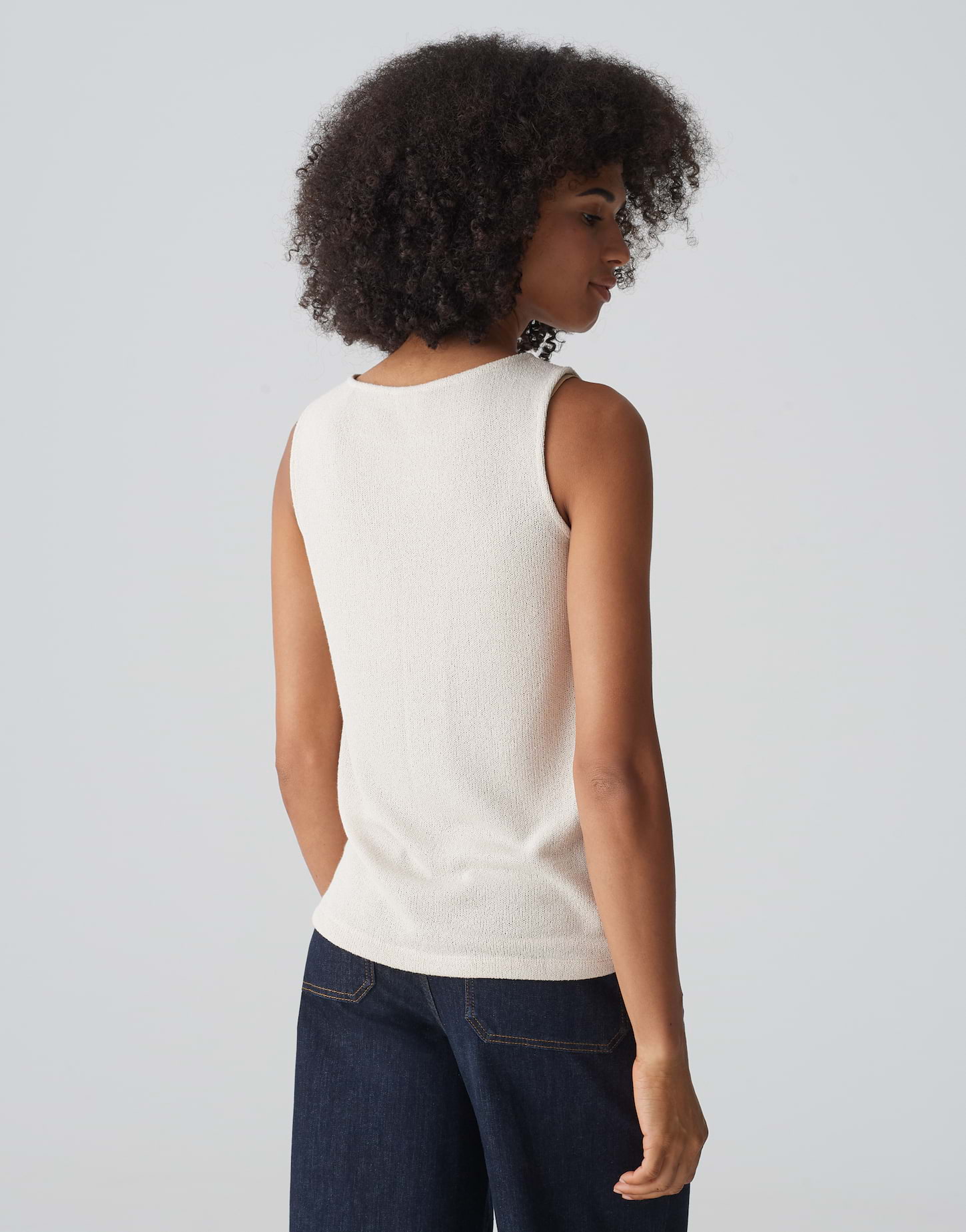 lockere Passform, gerader Schnitt, normale Länge, ärmellos, Rundhalsausschnitt, Rückenlänge ca. 56 cm bei Größe 36, Model Größe 179 cm - trägt Größe 36, ECOVEROT Viskose Mix, Jersey, Strick Optik