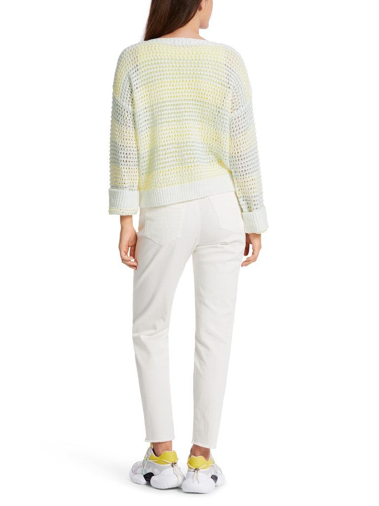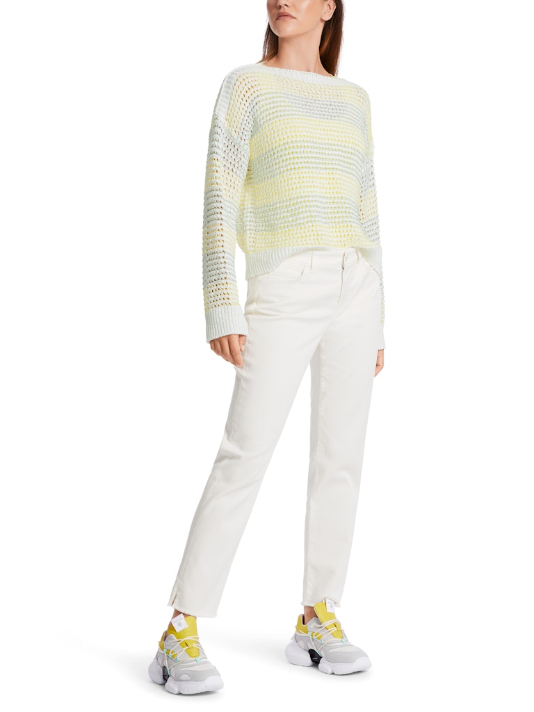In Deutschland gestrickter Pullover|Leger geschnittener Pullover mit locker gestrickter Perlfangstruktur. Der Pulli ist Knitted in Germany: Er wird mit modernsten Technologien in Deutschland gestrickt und veredelt. Die einzelnen Teile - wie Rücken- und Vorderteil etc. - werden in europäischen Partnerbetrieben zusammengenäht.|Leger geschnitten|Knitted in Germany|U-Boot-Ausschnitt|Mehrfarbig|Das Model ist 179 cm groß und trägt N3/38.