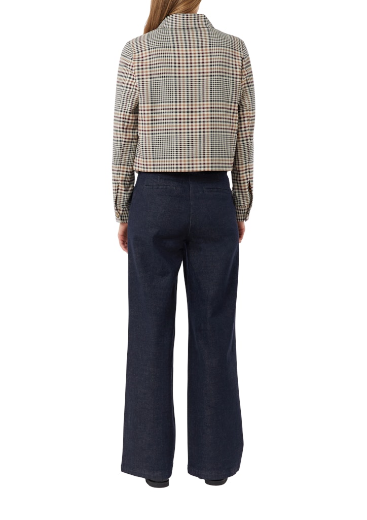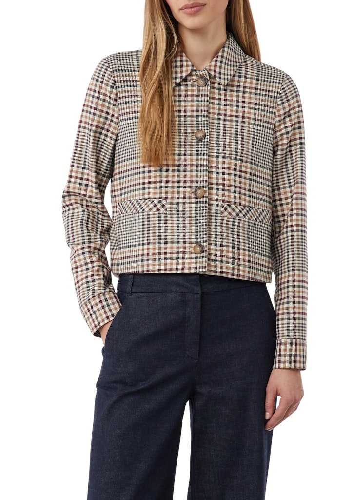 Entdecken Sie die modische Vielseitigkeit unserer kurzen Karojacke. Der feminine Boxy-Schnitt und der klassische Hemdkragen verleihen Ihnen eine stilvolle Silhouette. Hochwertige Webware und aufgesetzte Taschen kombinieren Eleganz mit Funktionalität. Perfekt für Casual- und Business-Looks, lässt sich diese Jacke mühelos von Tag zu Abend stylen. Die Knopfleiste und Manschetten runden das Design gekonnt ab.