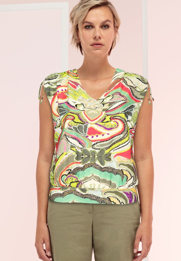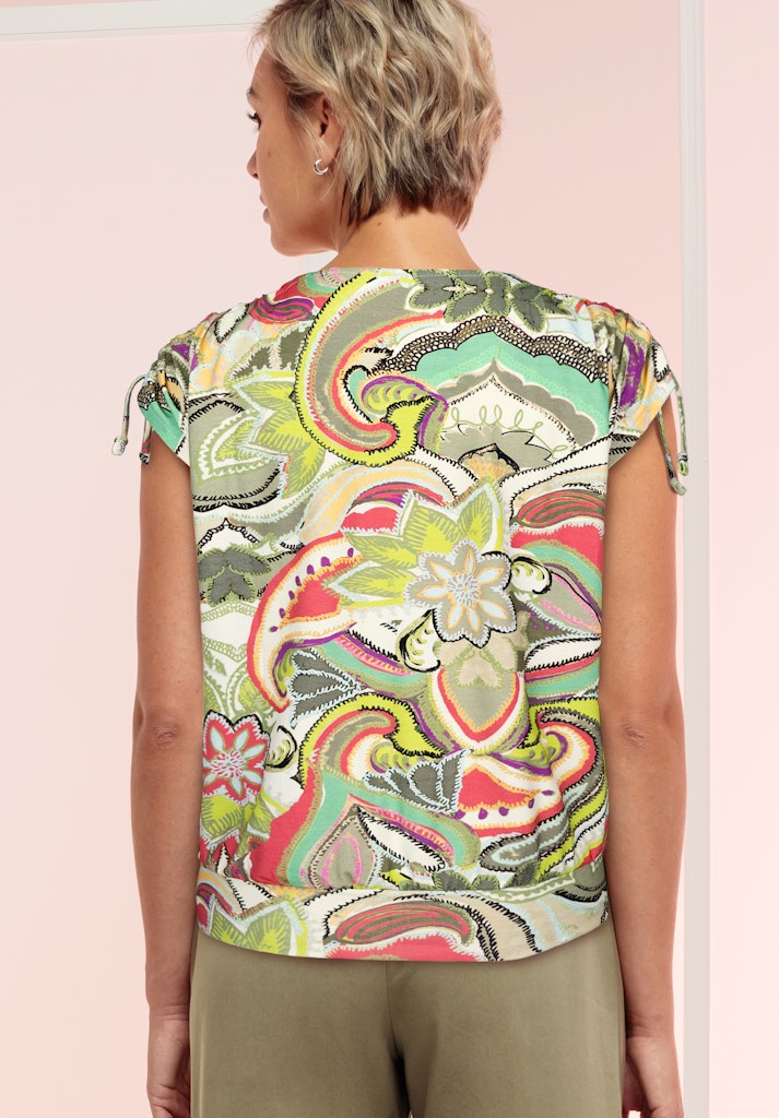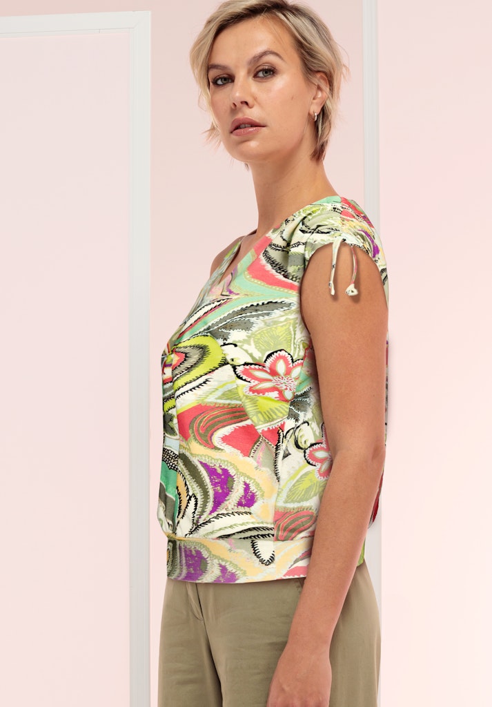 Sommerlich und lässig präsentiert sich unser neues Kurzarmshirt Julie mit breitem Saumabschluss. Die hochwertige Viskose mit Elasthan und die lockere Passform bieten ein besonders angenehmes Tragegefühl. Der V-Ausschnitt und überschnittene Schultern mit raffinierter Raffung unterstreichen den modischen Look. Ob leger zu Jeans und Sneakern oder kombiniert mit einer Businesshose - Julie ist ein vielseitiger Allrounder für viele Outfits.