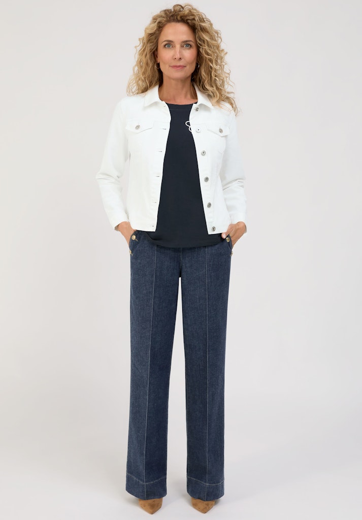 Ein vielseitiges Must-have: Unsere Jeansjacke June aus cleanem weißen Denim verbindet klassische Details mit einem frischen, modernen Look. Der stretchige Materialmix und die leicht taillierte Passform sorgen für angenehmen Komfort. Kentkragen, Logo-Zierknöpfe, Pattentaschen und lange Ärmel unterstreichen das zeitlose Design. Durch den cleanen Denim-Style lässt sich June mühelos kombinieren und ist der ideale Begleiter für trendige Freizeit-Outfits und stilvolle Alltagslooks.