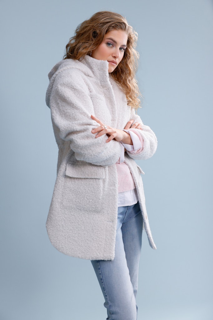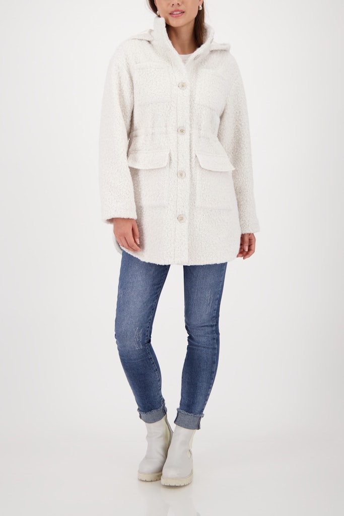 Diese bezaubernde Teddy-Jacke mit einer weichen Haptik, einer Kapuze und lässigen Pattentaschen sorgt für einen stilvollen Auftritt.