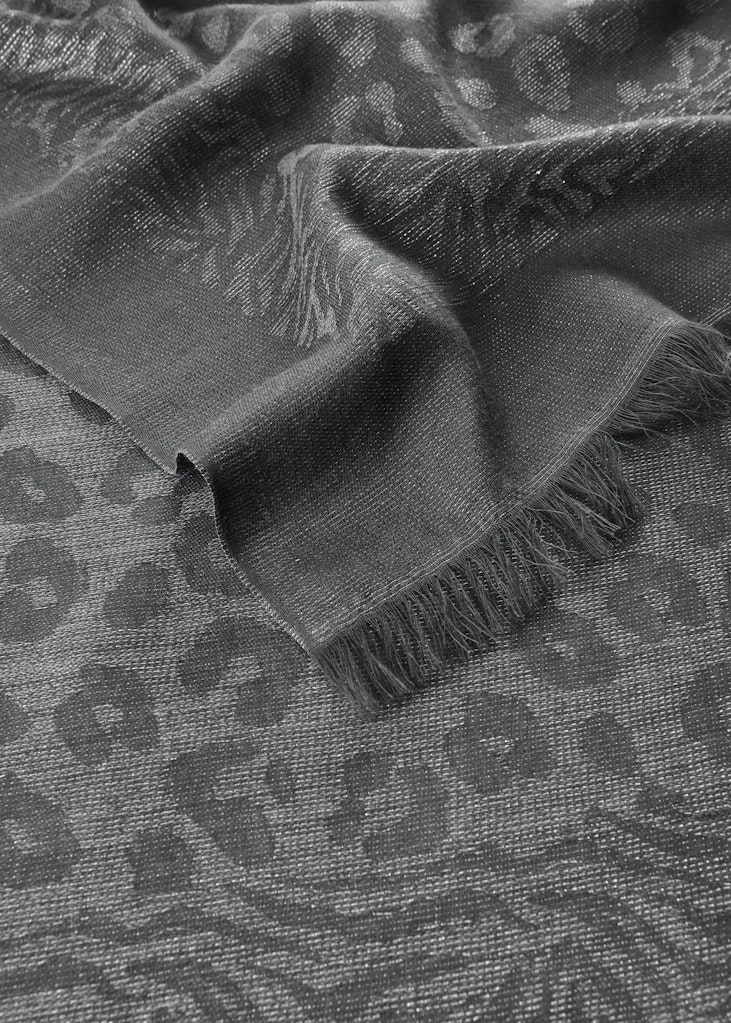 Jacquard Schal aus feiner Baumwoll-Mischung mit Leo-Muster und Lurex
