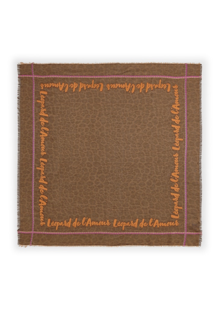 Jacquard Tuch aus Woll-Baumwoll-Mischung mit Leomuster und Schriftzug