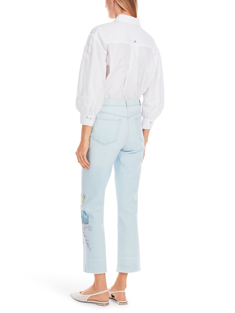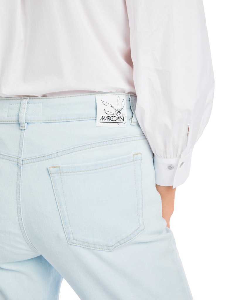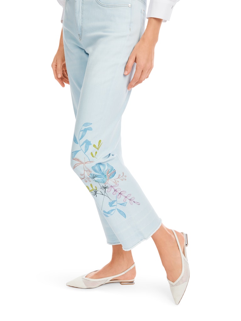 Jeans "Rethink Together" Modell FORLI|Modell FORLI sind Five-Pocket Jeans mit femininer Passform und geradem, verkürztem Bein. Bleached Denim und Blumenprint sind eine Referenz an den 'Summer of Love'. Der Saum wirkt, als sei er im DIY verlängert worden. Dank Cotton-Stretch hat das Modell Tragekomfort, Passform und ausgezeichneten Rücksprung - d.h., es behält seine Form. Es wird verantwortungsbewusst produziert und trägt das Nachhaltigkeitslabel "Rethink Together". Der Denim ist biologisch abbaubar.|Feminine Passform|Candiani Denim/Rethink Together|Verkürztes Bein|FORLI - FEMININE FIT - REGULAR - Beinlänge: 28"|Das Model ist 179 cm groß und trägt N3/38.