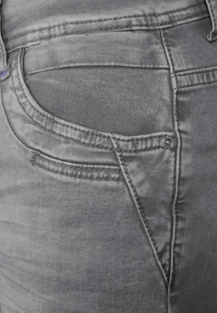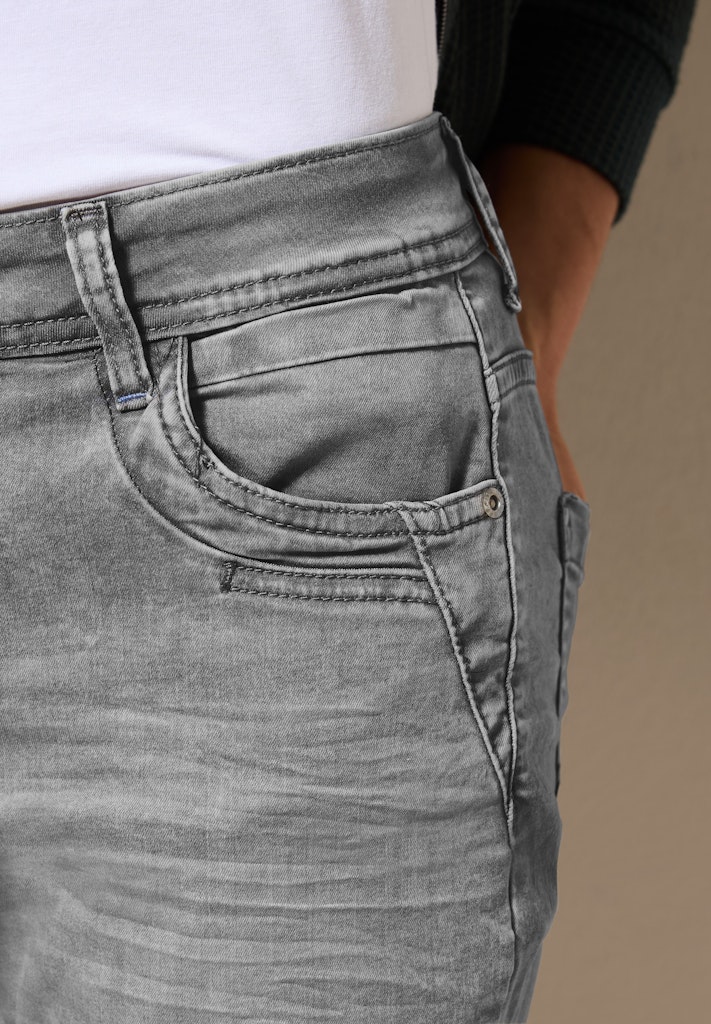 Die graue Casual Fit Jeans im Style Scarlett von CECIL für Damen ist der ideale Begleiter für entspannte Looks. Mid Waist, Slim Legs und das 5-Pocket-Design machen sie vielseitig kombinierbar. Der Baumwollmix mit Stretchanteil sorgt für eine bequeme Passform. Jeanshose Mid Waist und Slim Legs 5-Pocket Graue Waschung Baumwollmix mit Stretchanteil Material: 78% Baumwolle, 20% Polyester, 2% Elasthan