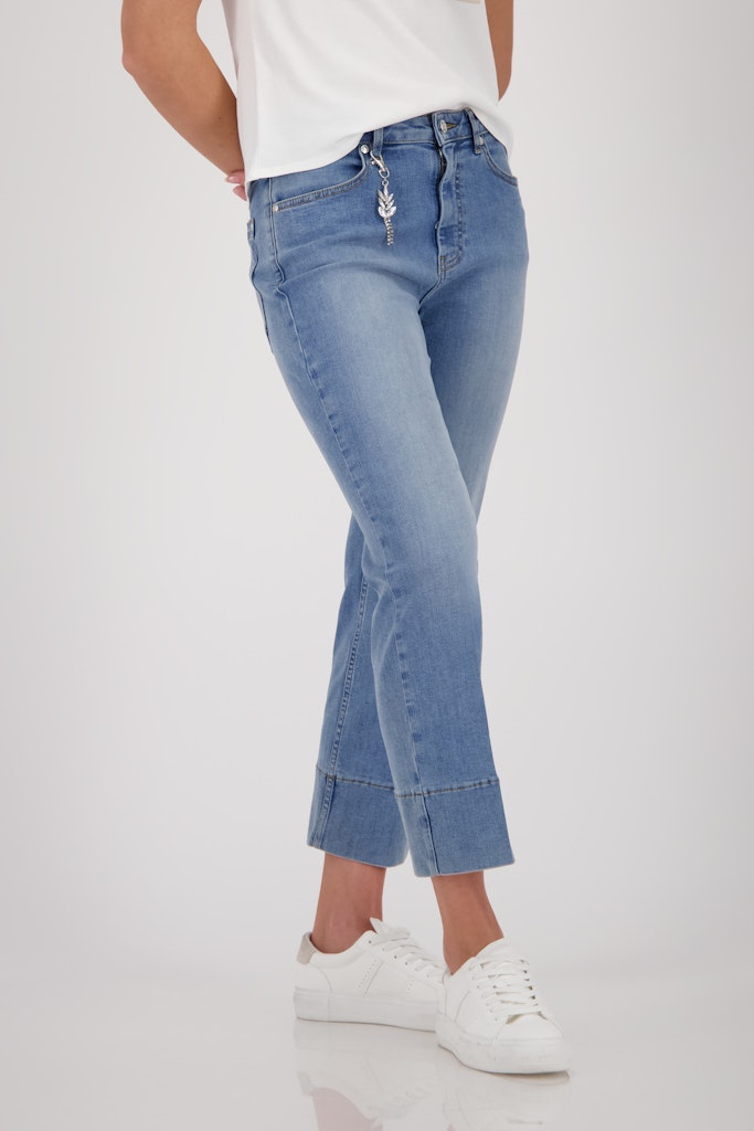 Elegante Culotte Jeans aus einer hochwertigen Baumwollmischung mit einem funkelnden Strass-Anhänger und stilvollen Taschen. Perfekt für jeden Anlass.
