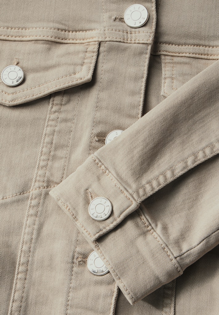 Diese angesagte Denim Jacke von Street One für Damen eignet sich ideal als Layering Piece zum Drüberziehen. Die Jeansjacke hat einen Hemdkragen, Brusttaschen und seitliche Taschen sowie eine Knopfleiste. Gefertigt aus einem Baumwollmix mit Stretchanteil ist die Jacke besonders angenehm zu tragen. Denim Jacke Hemdkragen Brusttaschen und seitliche Taschen Knopfleiste Baumwollmix mit Stretchanteil Material: 92% Baumwolle, 6% Elastomultieste, 2% Elasthan