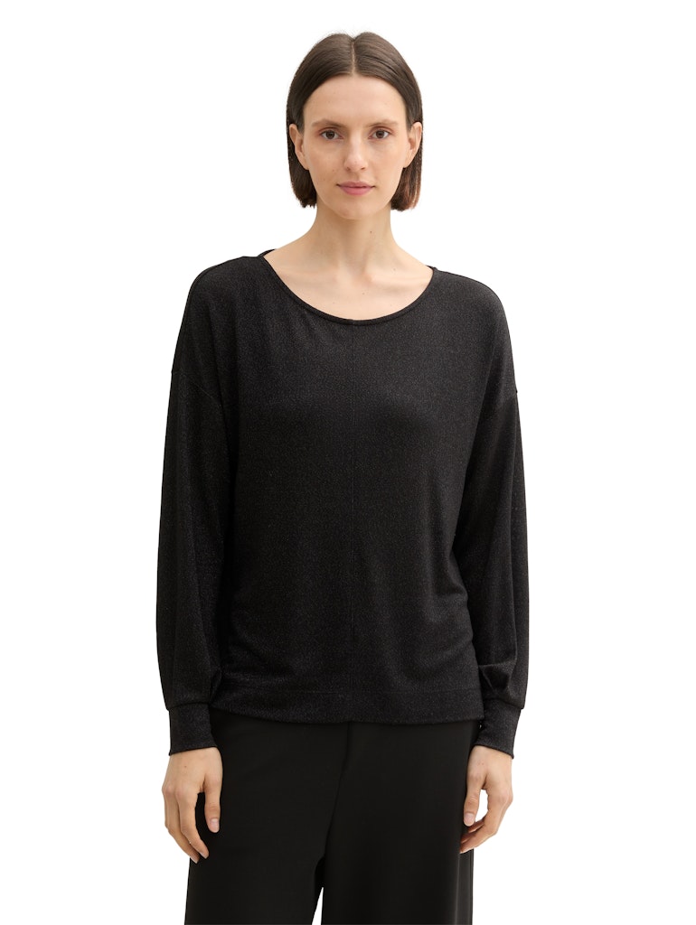 Longsleeve with roundneck and slit at cf, front woven fabric
