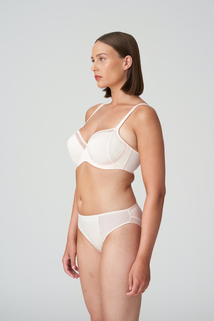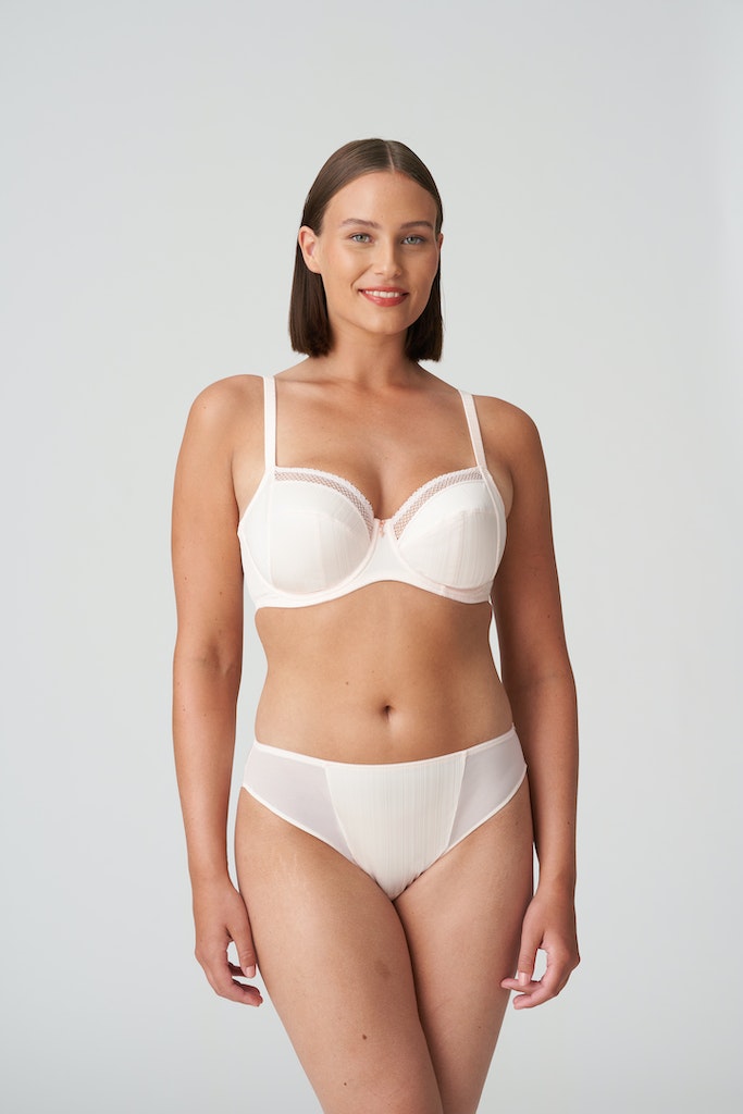 Sportlich-schicker Bügel-BH mit Vollschale-Cups aus einem glänzenden Satinstoff mit Linienprint, der sich in den Trägern fortsetzt. Die Spitze an den oberen Cups sorgt für ein feminines Dekolleté und ein roségoldenes Schmuckstück in der vorderen Mitte rundet Ihren Look ab.