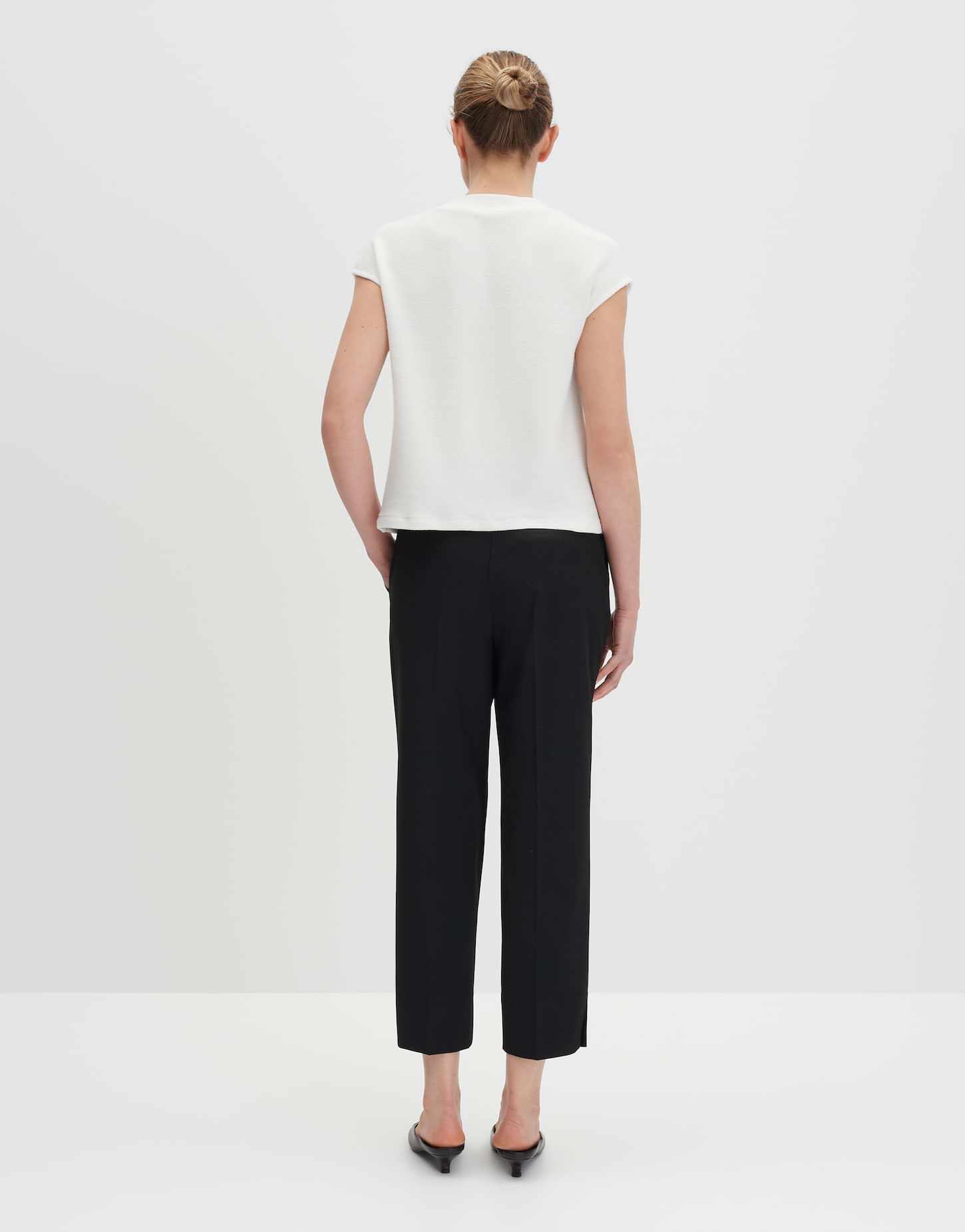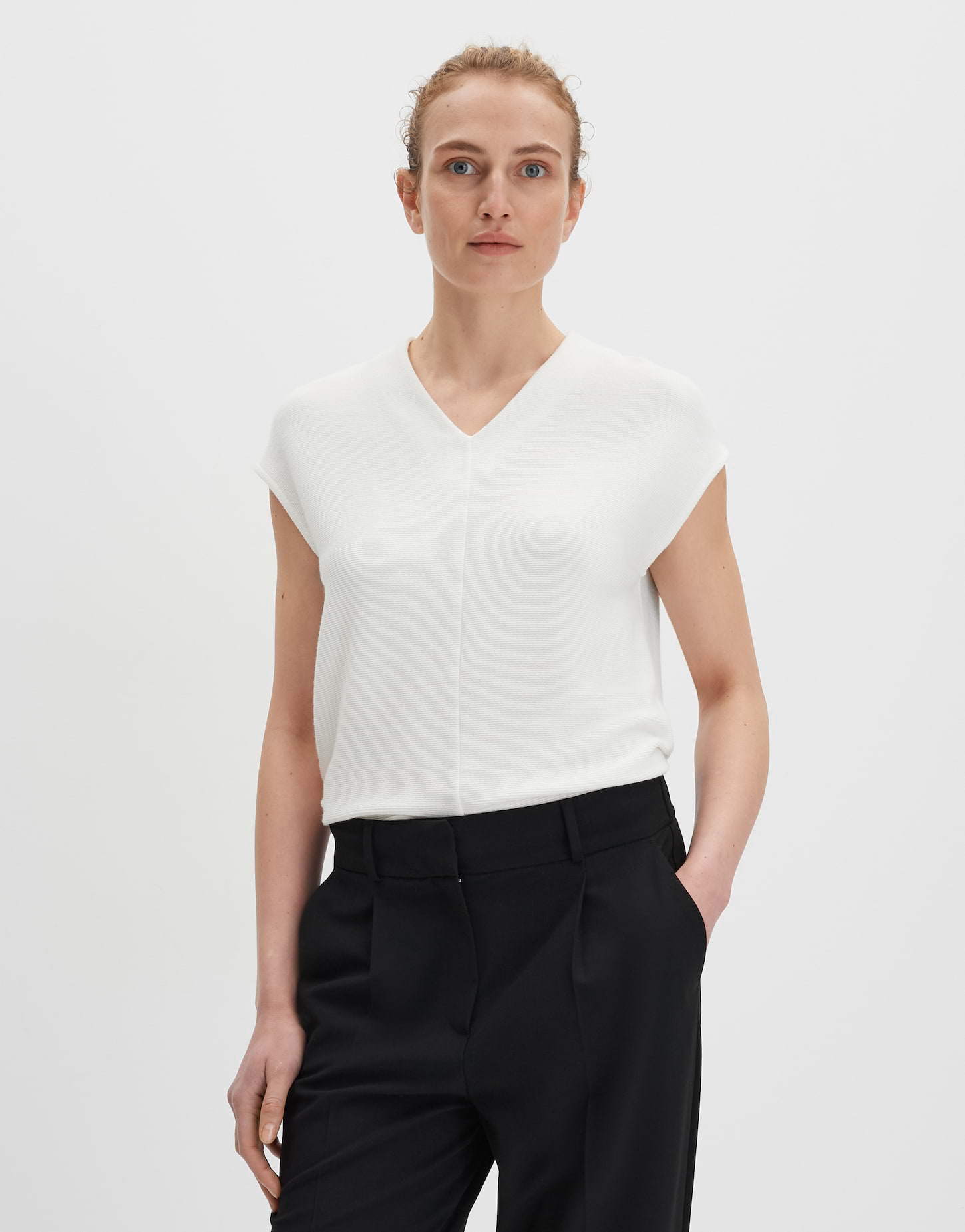 normale Passform, gerader Schnitt, überschnittener Kurzarm, V-Ausschnitt, Rückenlänge ca. 56 cm bei Größe 36, Model Größe 178 cm - trägt Größe 36, Jersey, Ottoman Struktur, weicher Griff, fließender Fall, elastischer Stoff