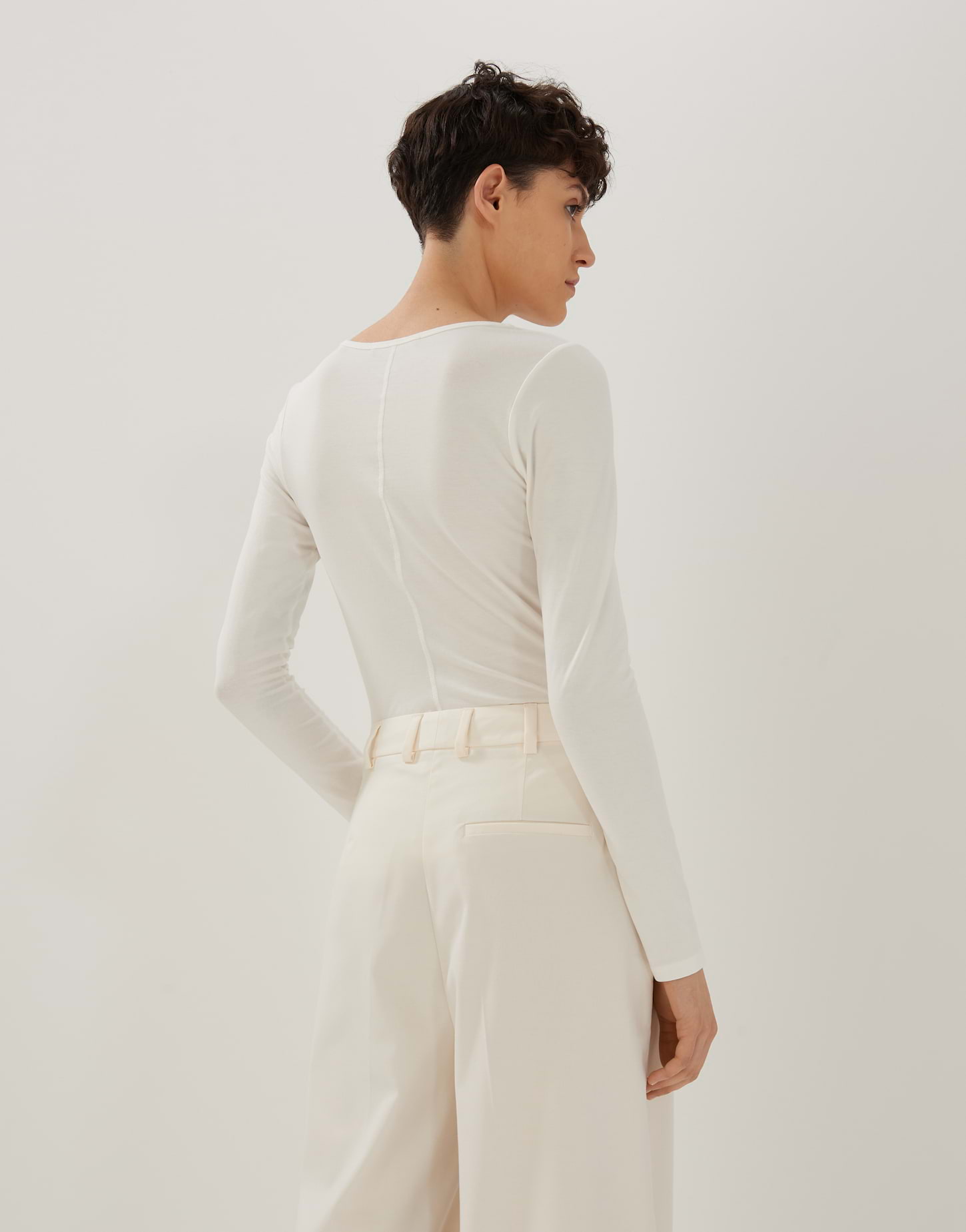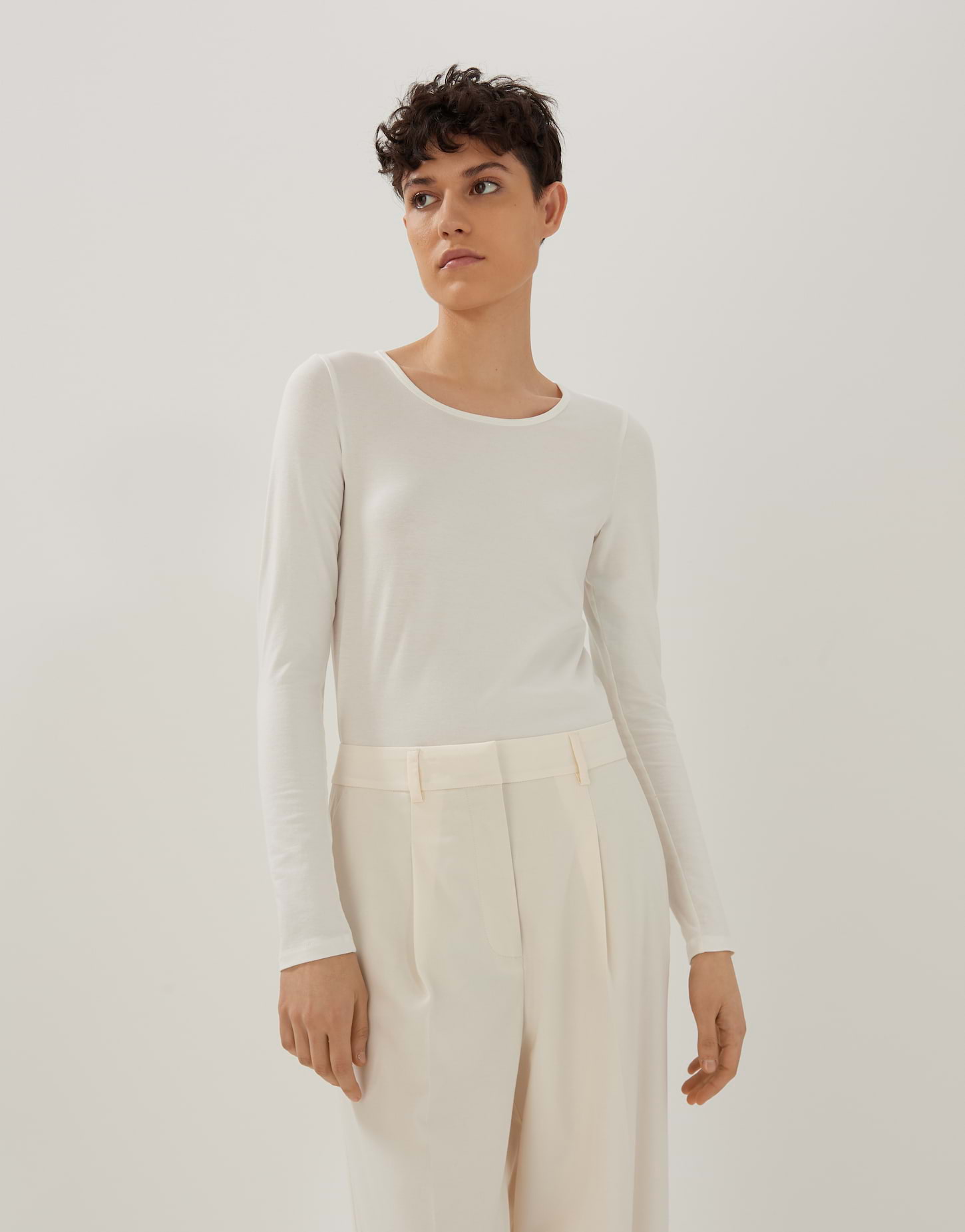 schmale Passform, figurbetont geschnitten, normale Länge, Langarm, Rundhalsausschnitt, Rückenlänge ca. 62,5 cm bei Größe 36, Modal Mix, Jersey, weicher Griff, Längsnaht hinten