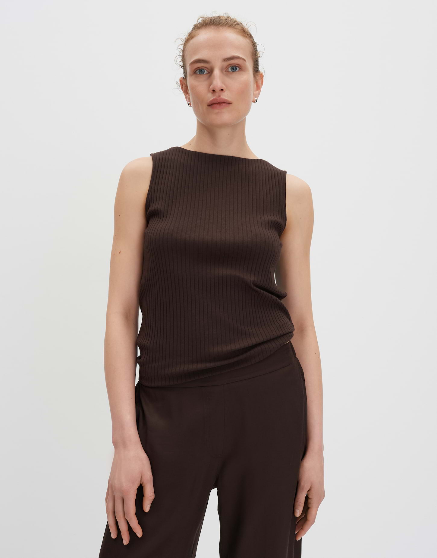 schmale Passform, gerader Schnitt, ärmellos, U-Boot-Ausschnitt, Rückenlänge ca. 58 cm bei Größe 36, Model Größe 176 cm - trägt Größe 36, Jersey, Rippstruktur, weicher Griff, elastischer Stoff