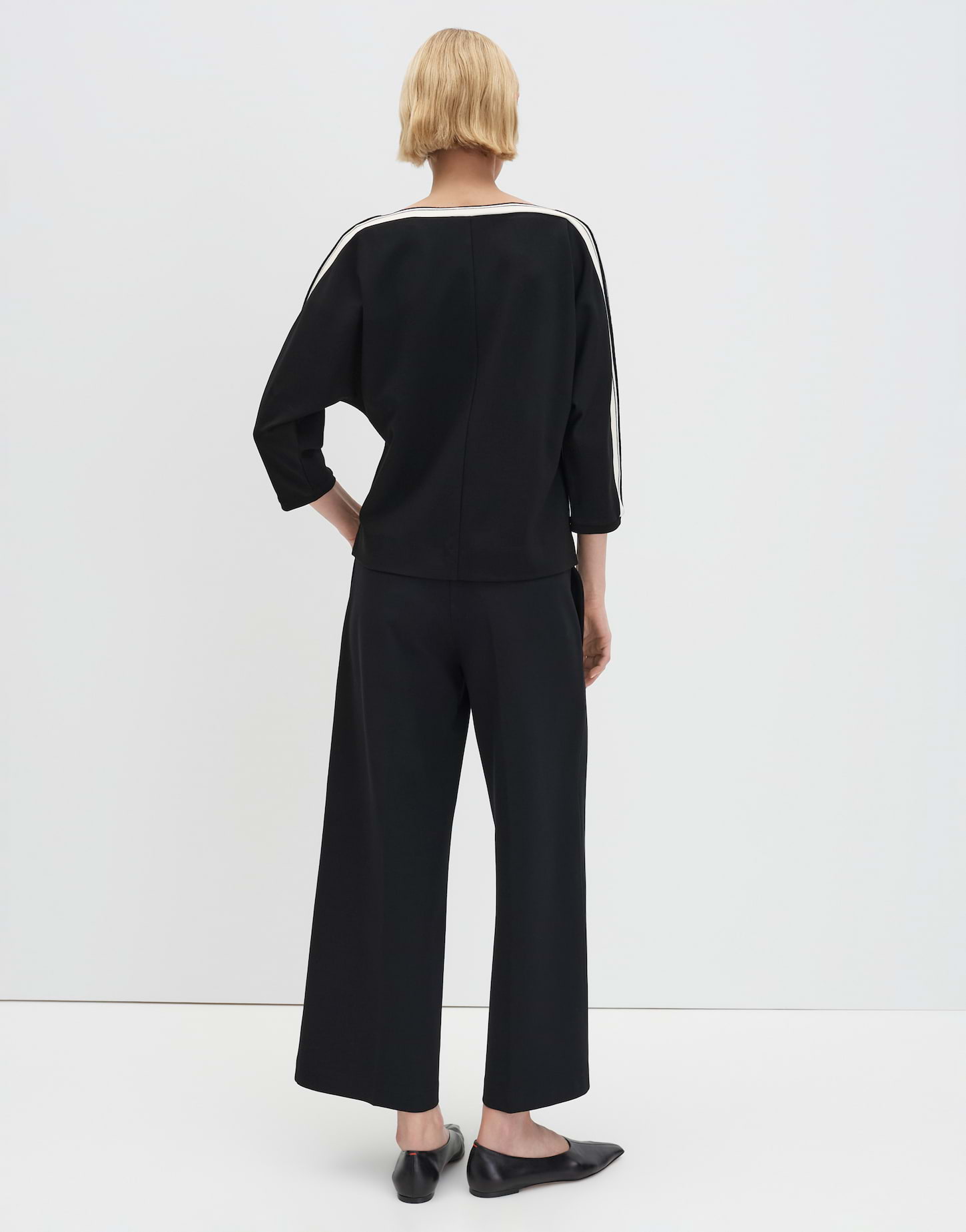lockere Passform, schmal zulaufend, Fledermausärmel in 3/4 Länge, U-Boot-Ausschnitt, Rückenlänge ca. 56 cm bei Größe 36, Model Größe 177 cm - trägt Größe 36, Jersey, weicher Griff, elastischer Stoff, gestreiftes Ripsband
