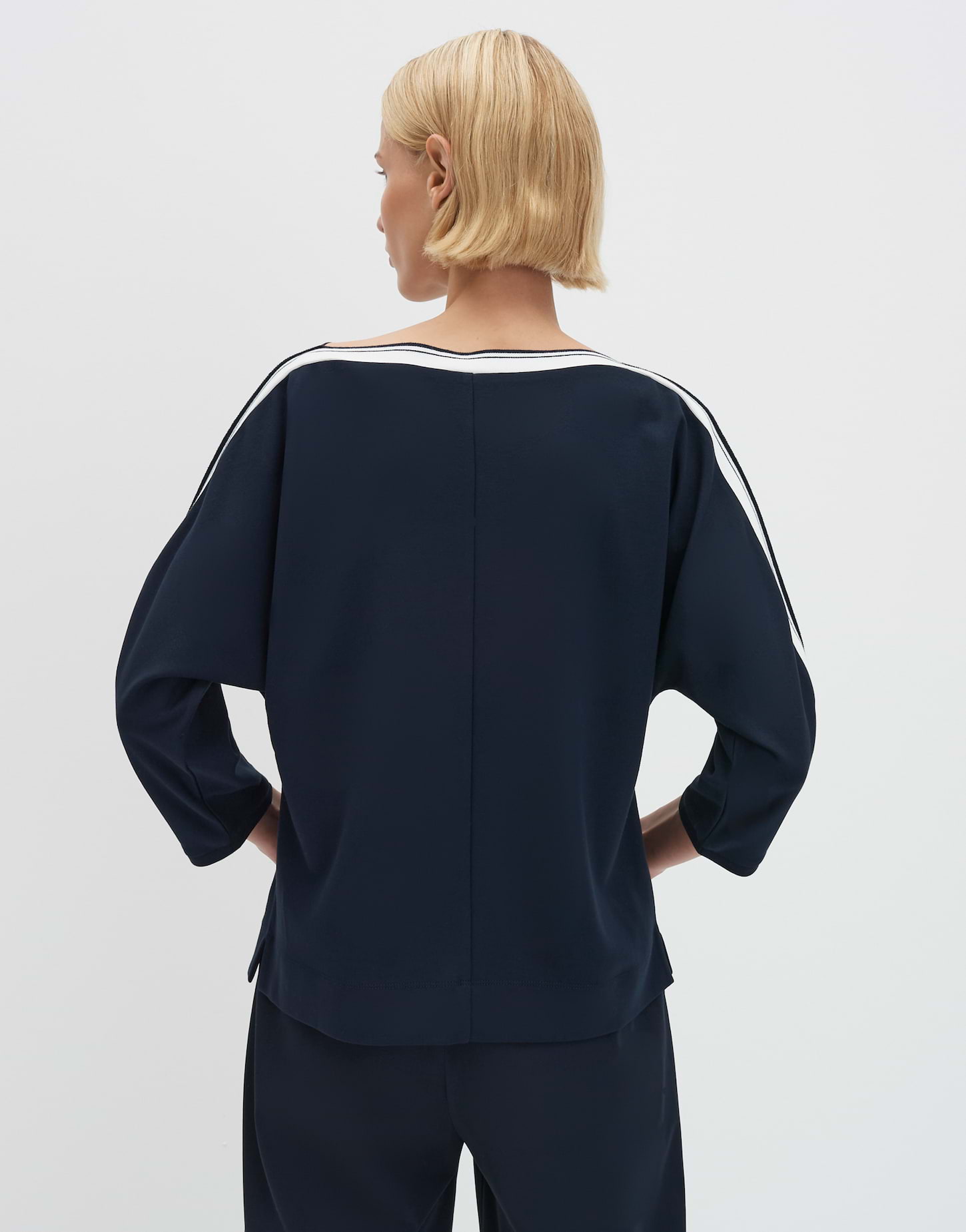 lockere Passform, schmal zulaufend, Fledermausärmel in 3/4 Länge, U-Boot-Ausschnitt, Rückenlänge ca. 56 cm bei Größe 36, Model Größe 177 cm - trägt Größe 36, Jersey, weicher Griff, elastischer Stoff, gestreiftes Ripsband